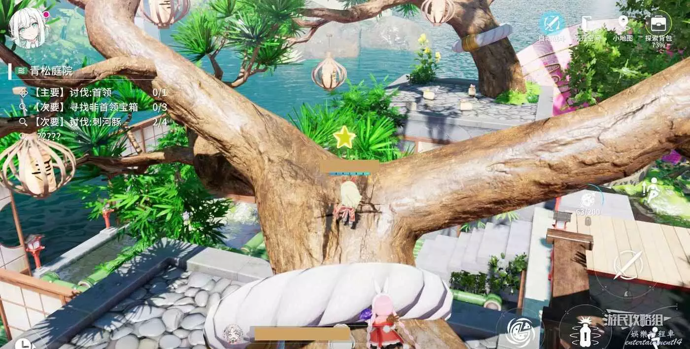 然後沿著樹幹走到樹上,拾取第一顆【星星】。