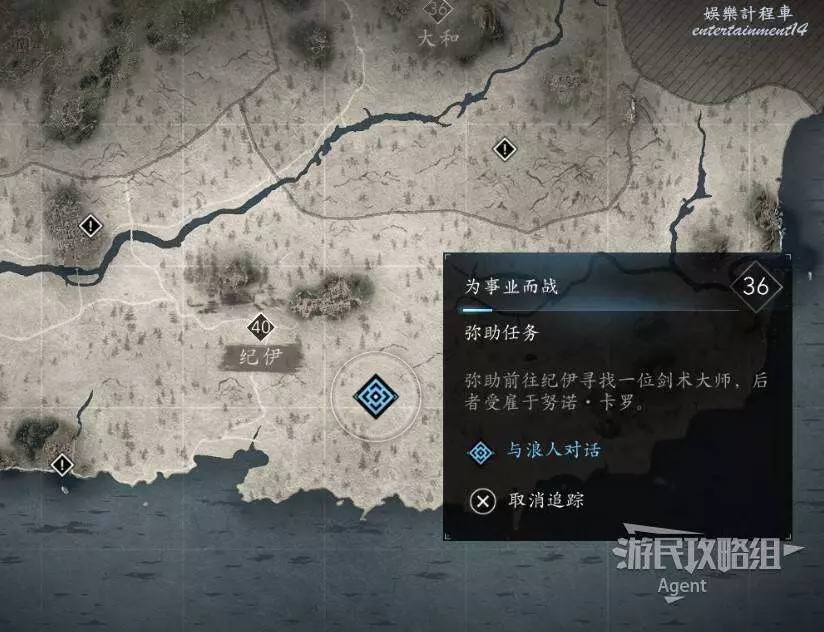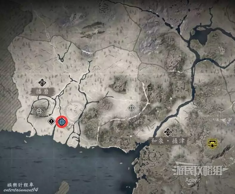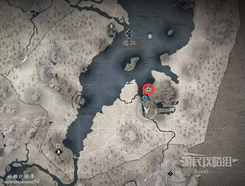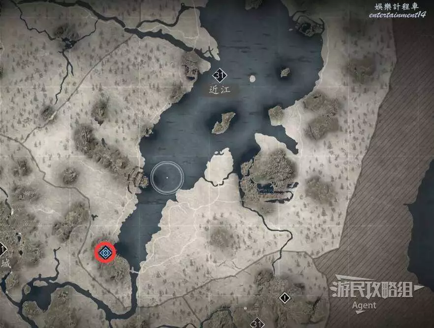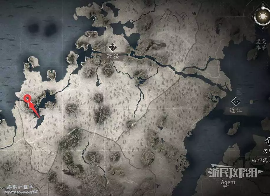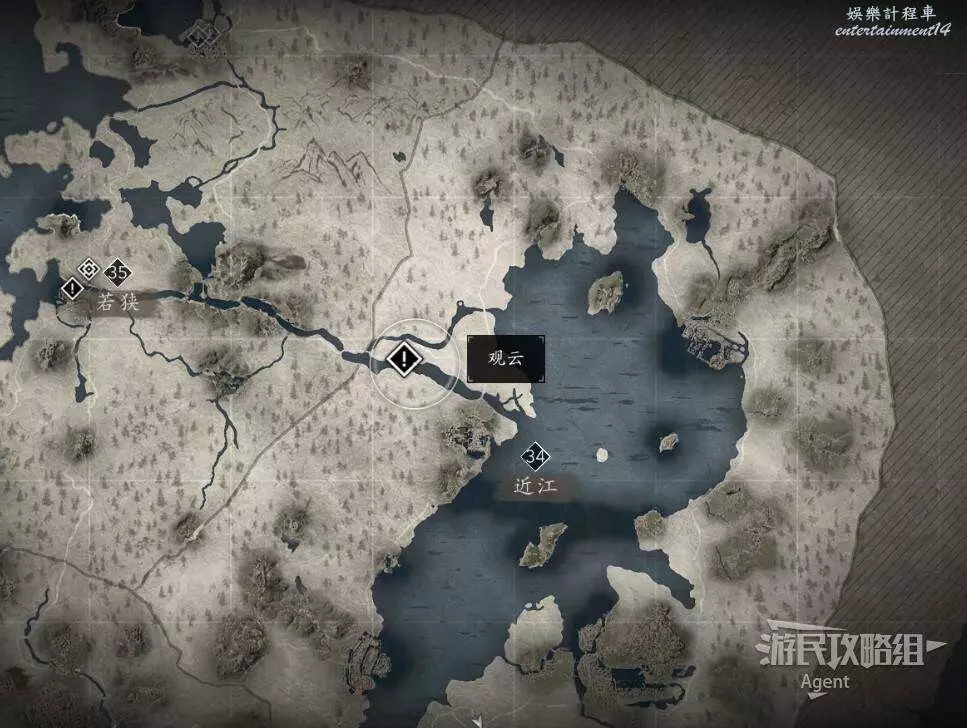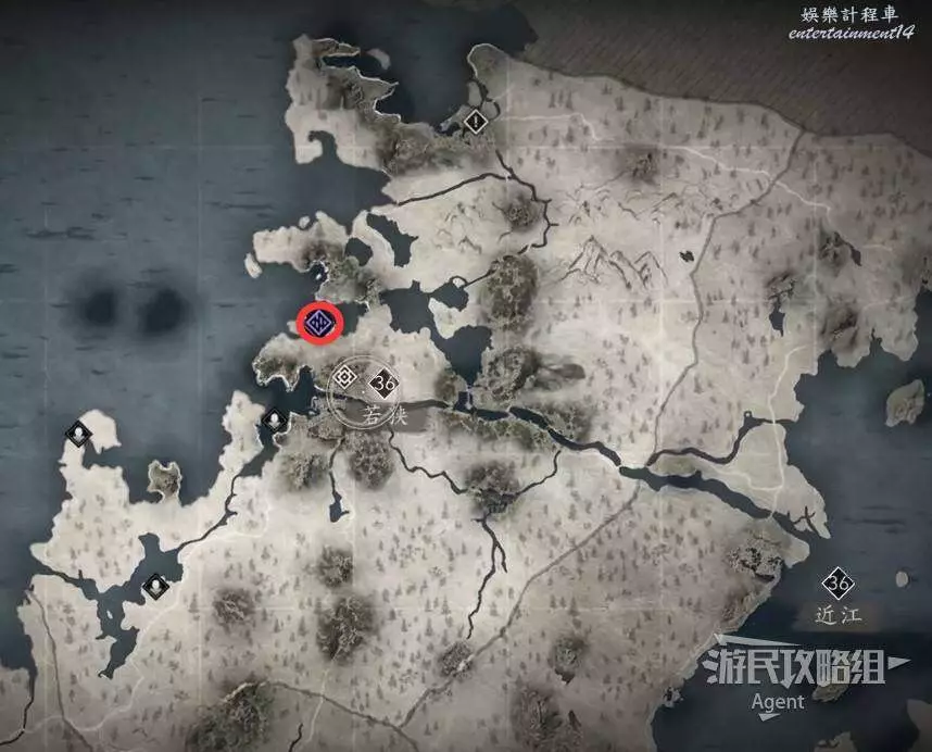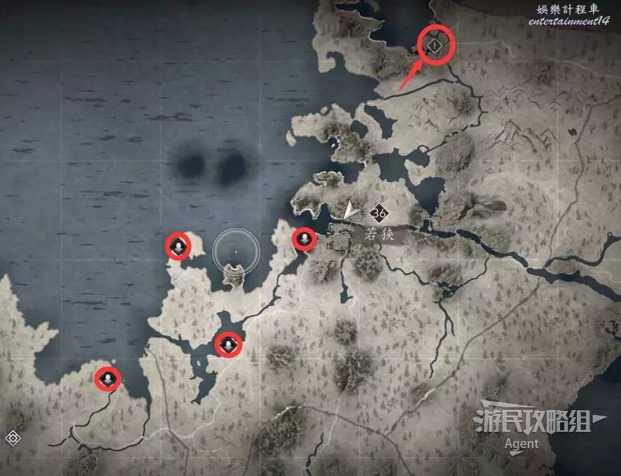 琵琶大師只會給你四個水賊的位置,如下圖。要想找到最後一個水賊,還需要去若狹北部的敦賀城,完成任務“甜蜜的謊言”。