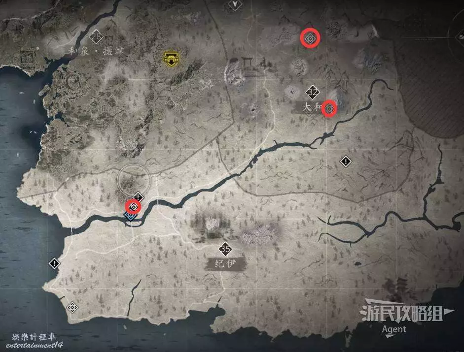 然後去找近江、伊賀、大和、紀伊四個刺客據點。每個刺客據點,都是通過秘道(XX之路)抵達,跟隨黃色油漆走就行。