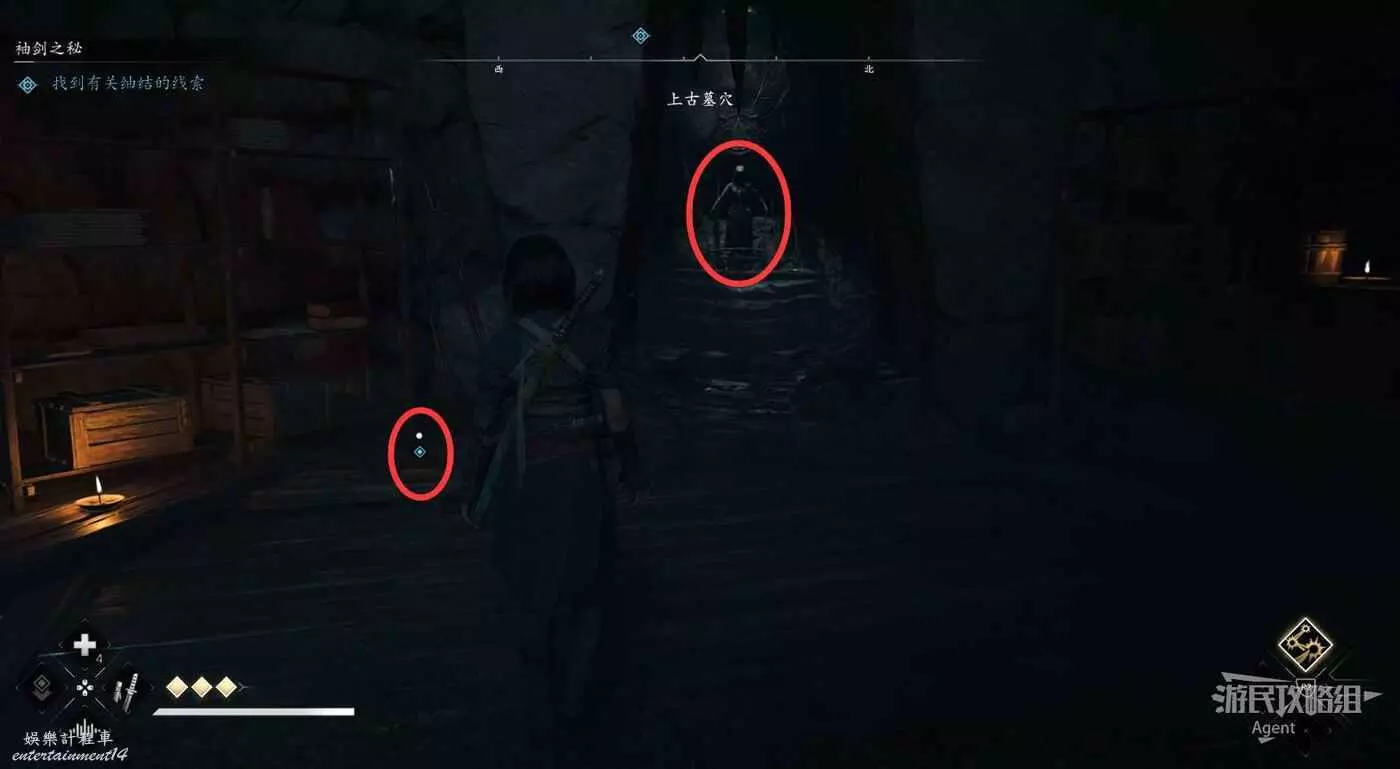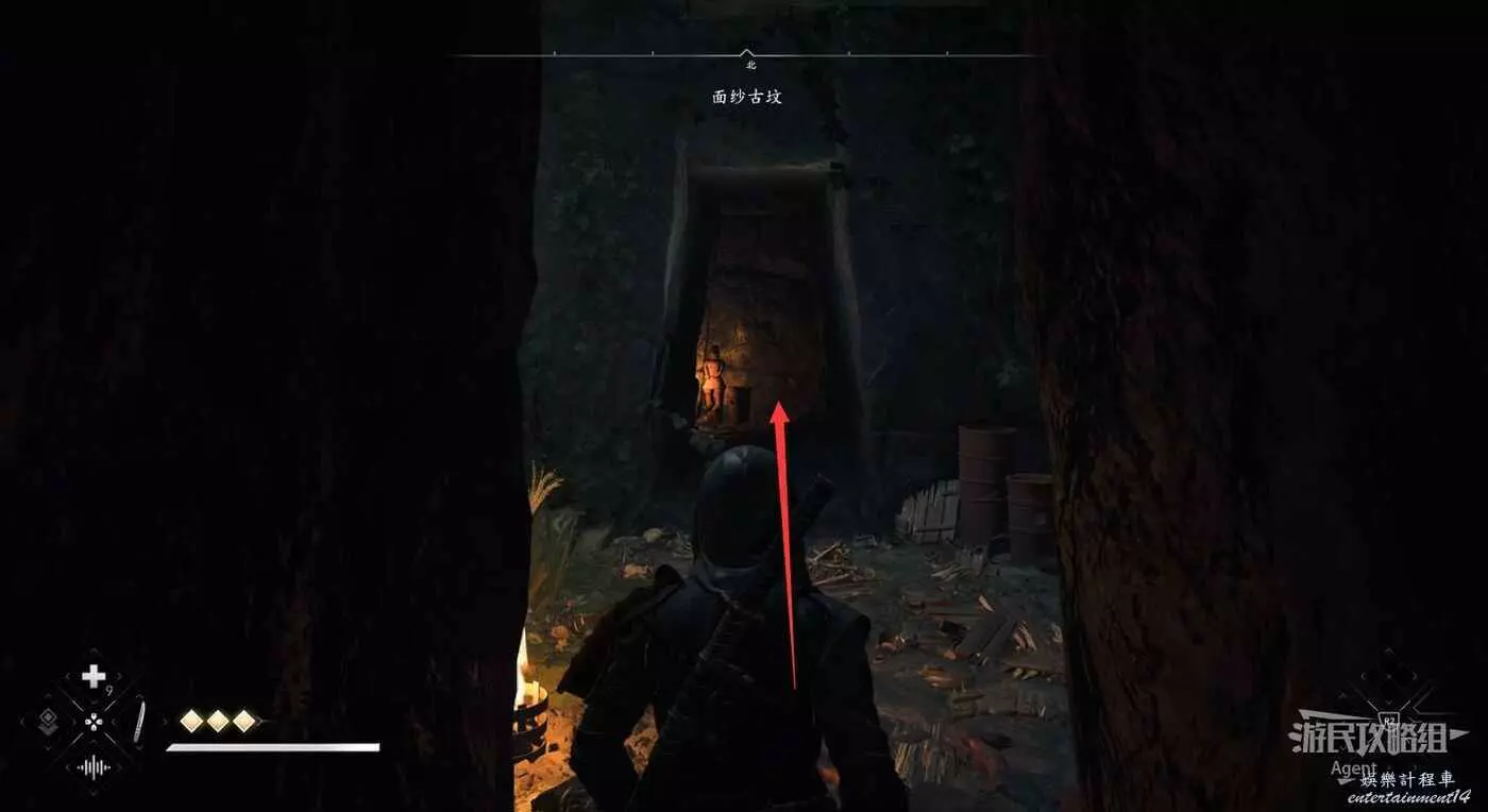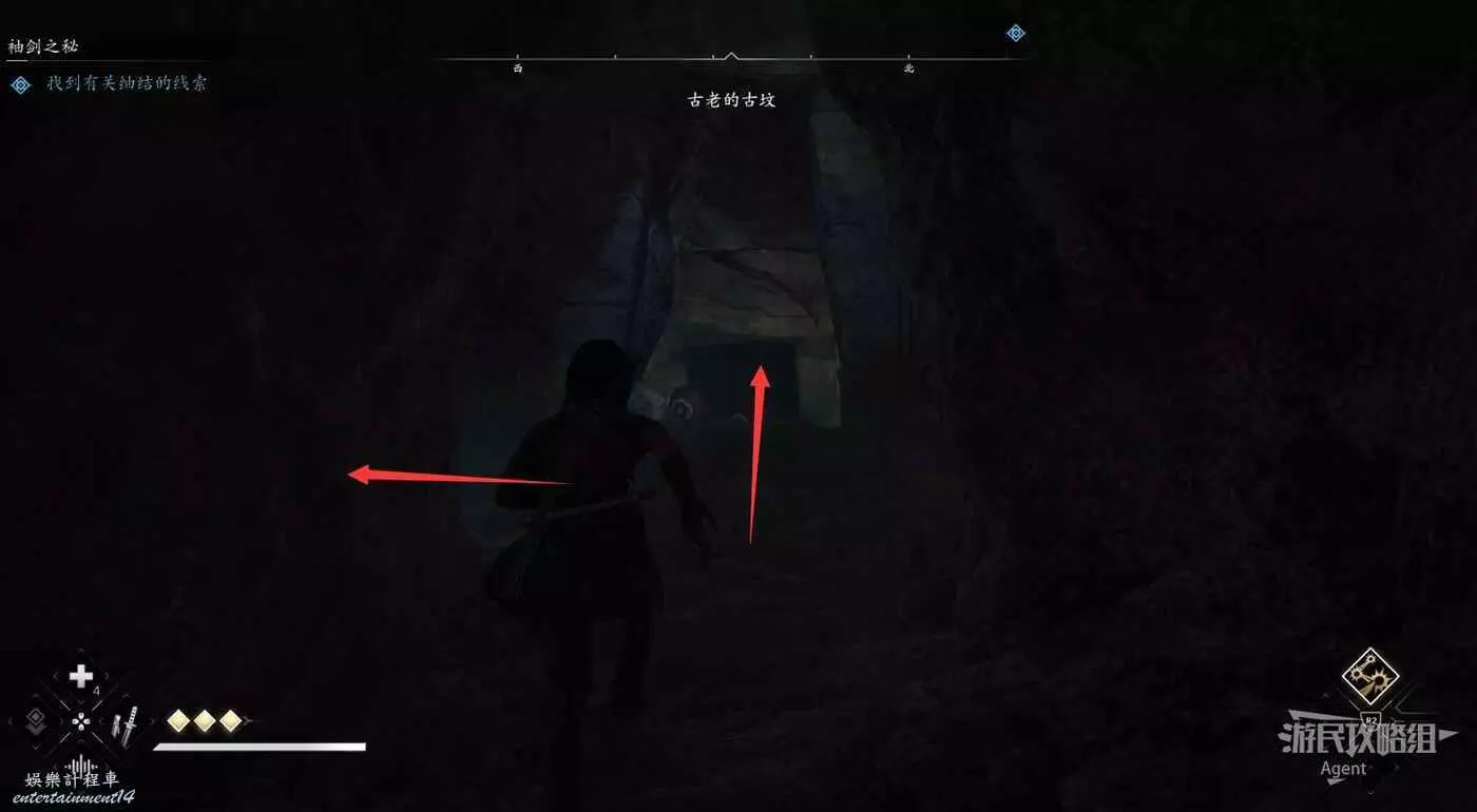 已經探索過古墳的話,直接往前走。如果還沒有探索過這個古墳,左拐鑽洞先探索完古墳,然後才能進入上古墓穴。