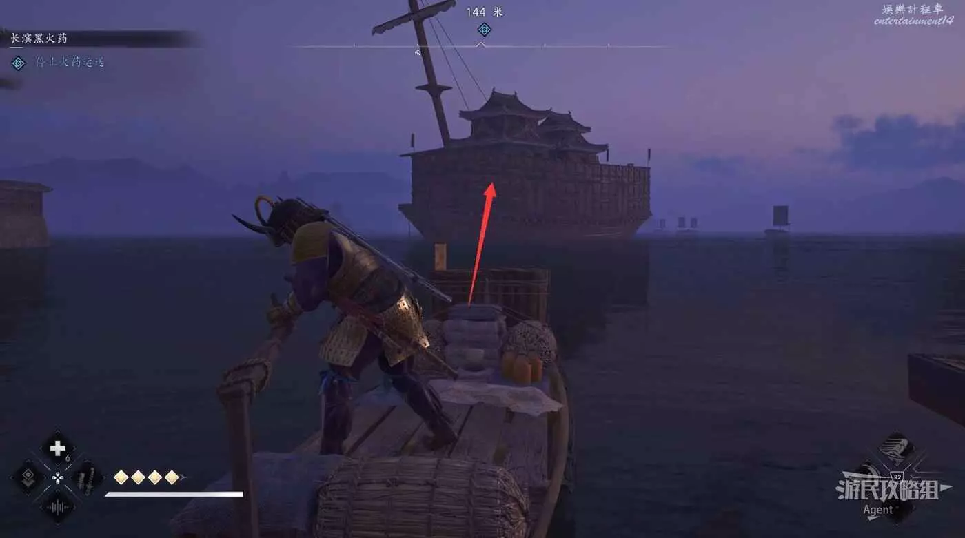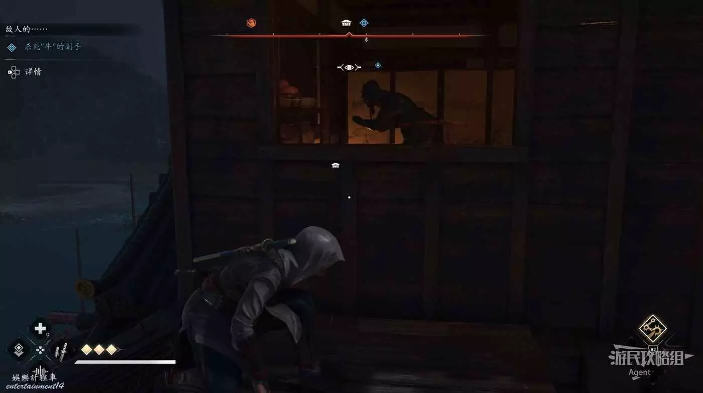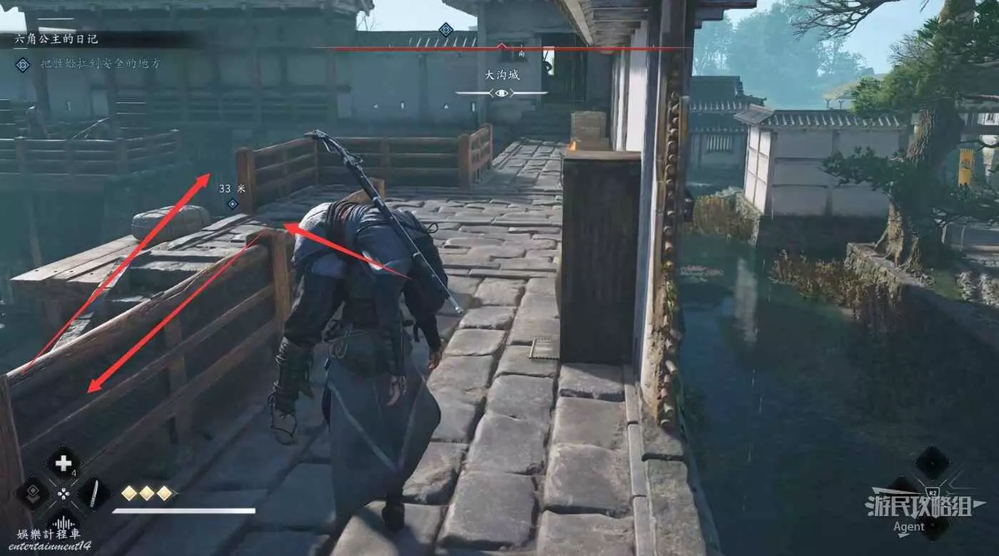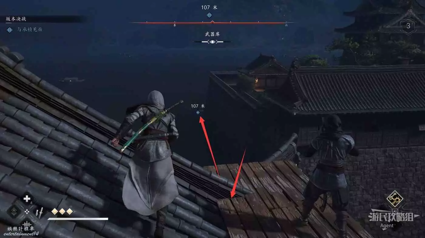 到房頂和勝姬對話後,到下面有船,划船去找承禎。然後潛入高塔刺殺明智景光。