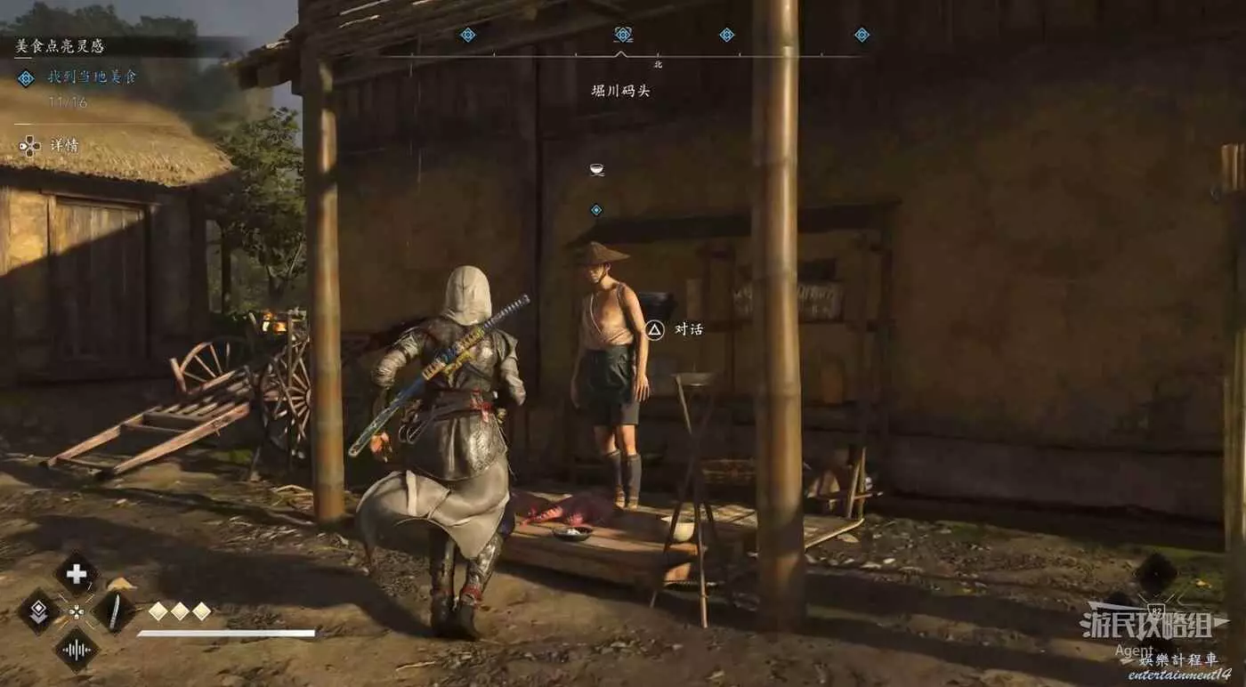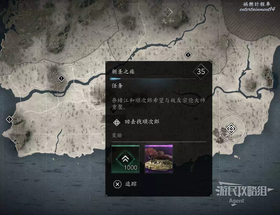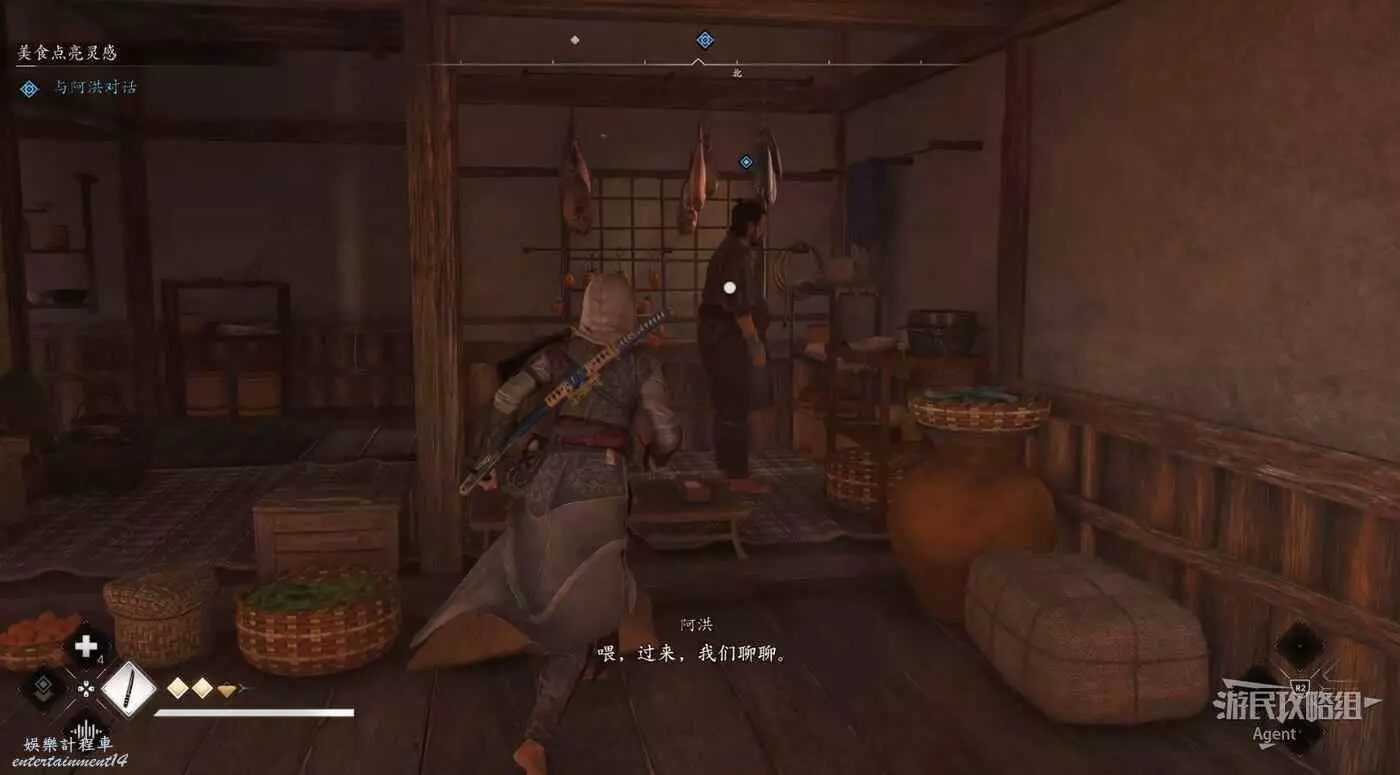 然後去做兩個分支小任務:尋找鮫丸的線索、找到彈琵琶的人。