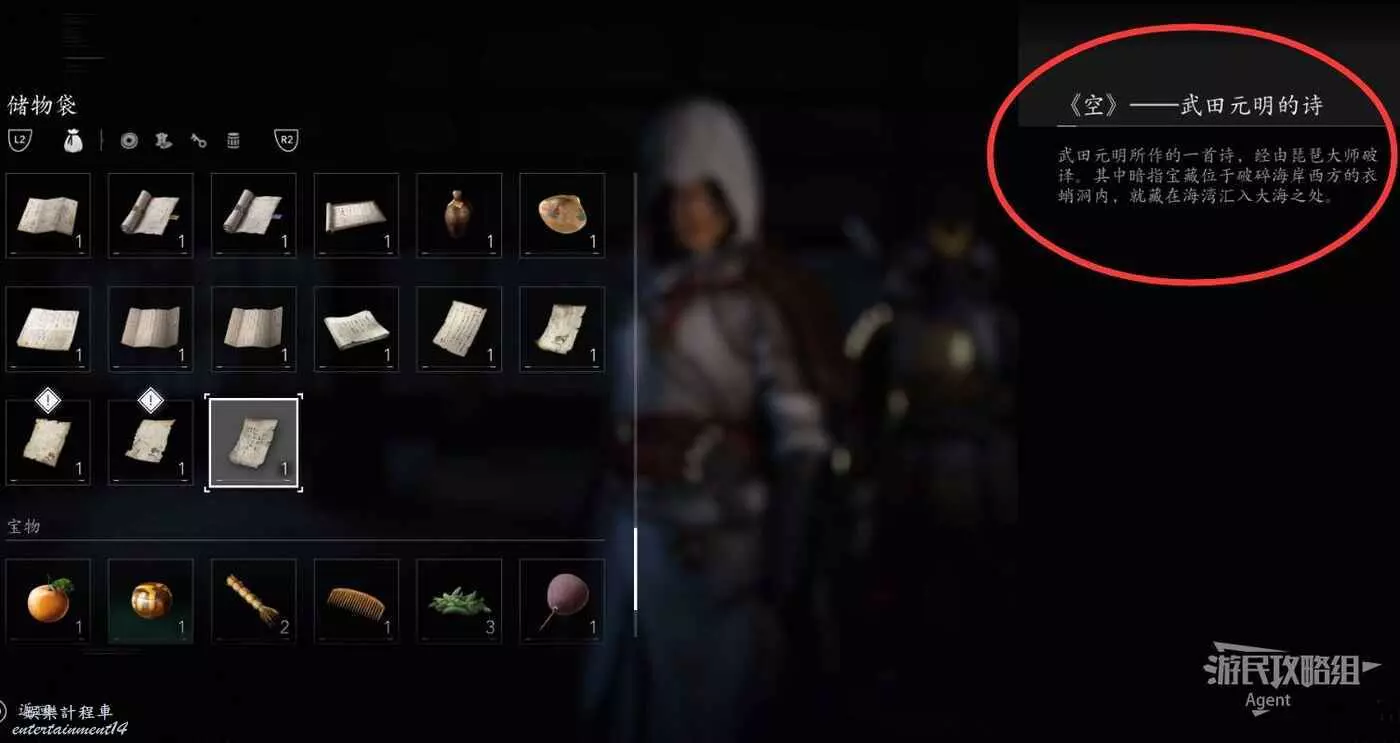 水賊同盟的任務也順便一起完成了,和琵琶大師對話後,得到《空》——武田元明的詩。