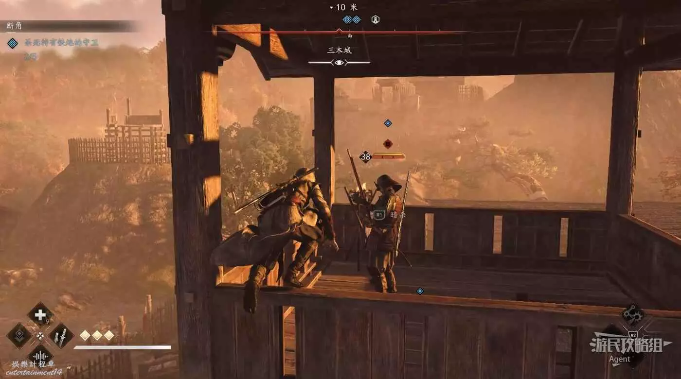 和中村忠滋對話後,先使用奈緒江潛入三木城,刺殺所有火槍手。