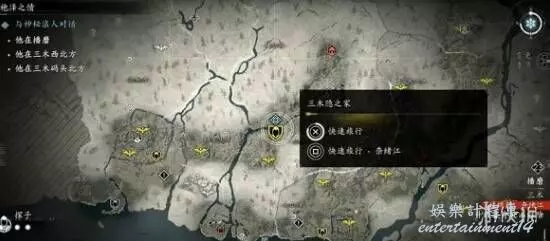 打開地圖,可直接傳送到任務點附近的俯瞰點或隱之家。