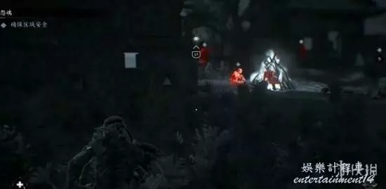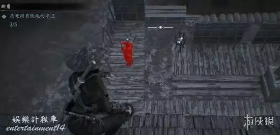 就在這個建築的背面,通過觀察可看到三個需要擊殺的敵人。旁邊的屋簷下還有一個敵人,要注意警戒。