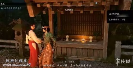 對話結束後,跟隨巫女冬一起想三座神社供奉清酒: