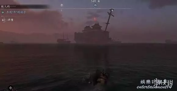 彌助直接跟著任務目標走,利用船上的梯子狀結構爬上西側到江上的一艘船上。