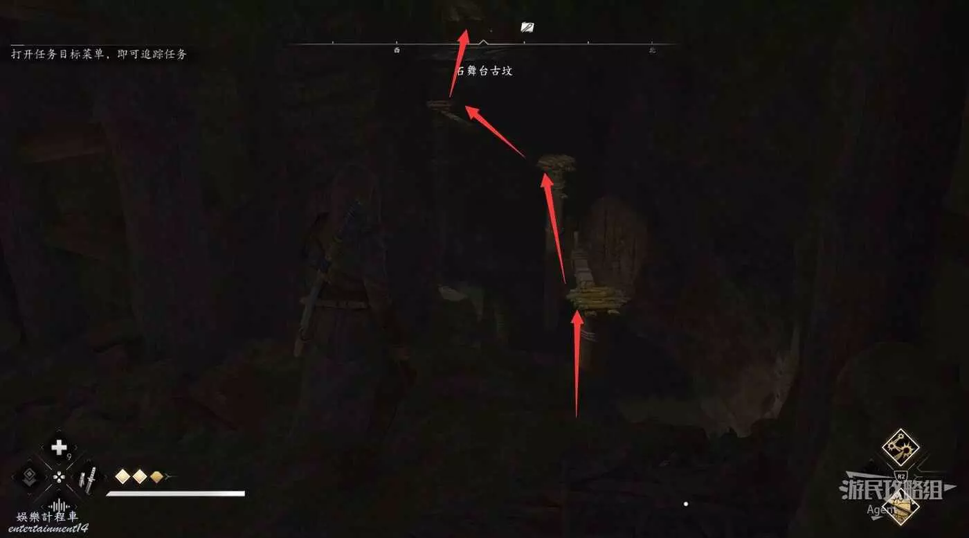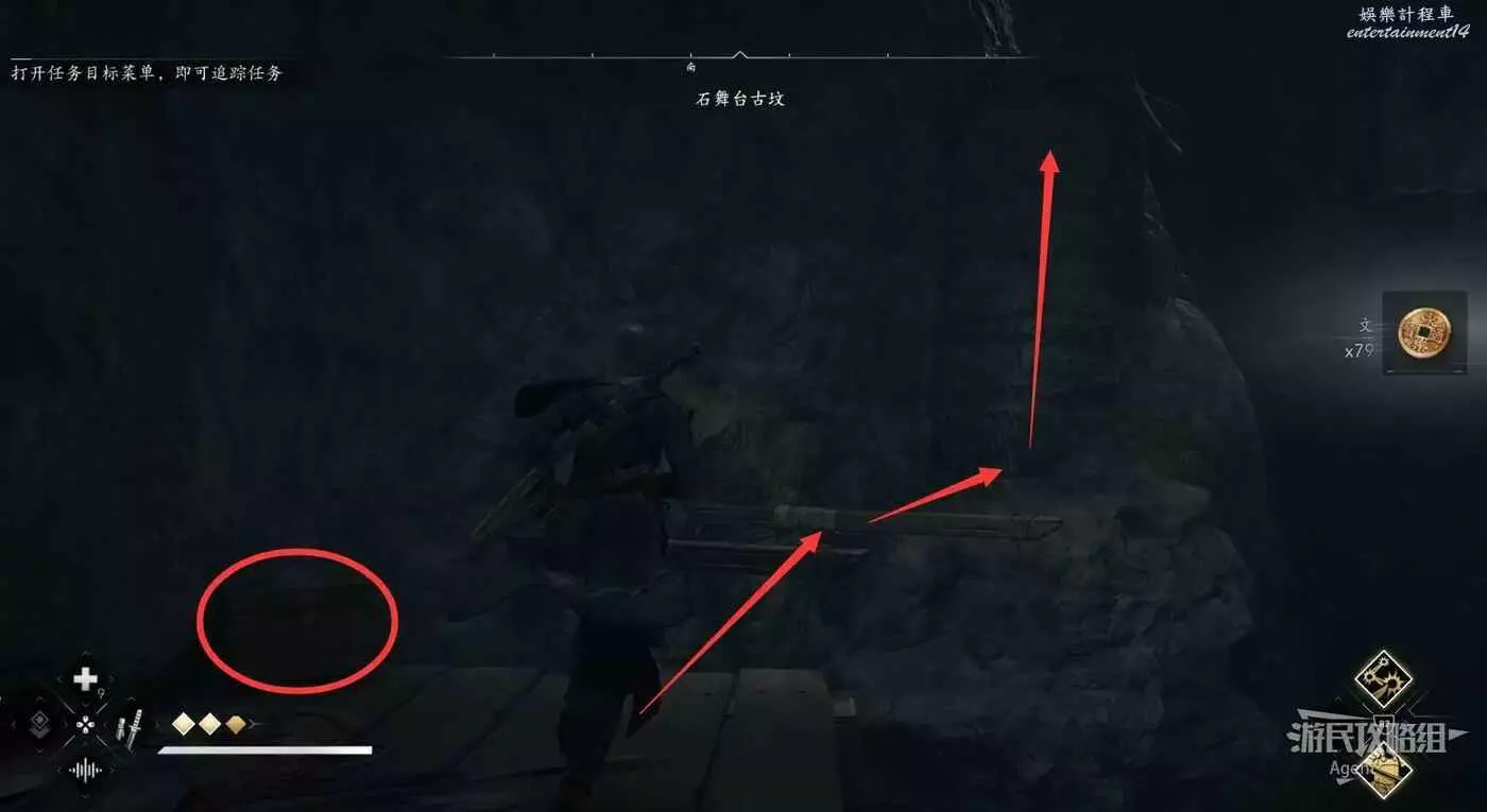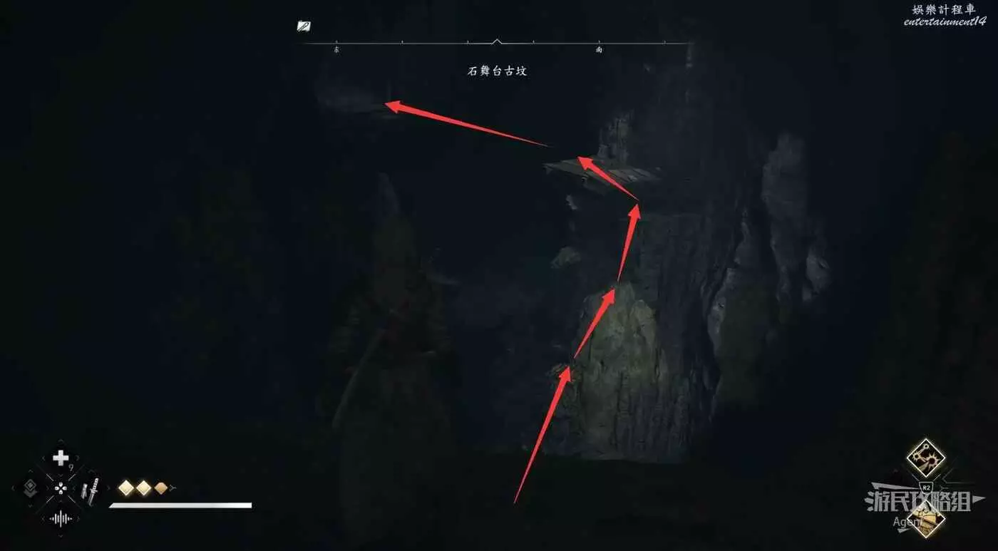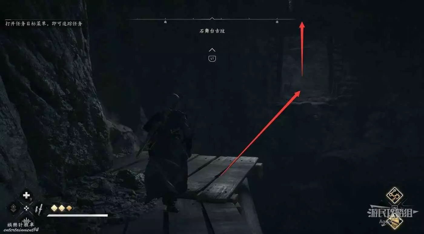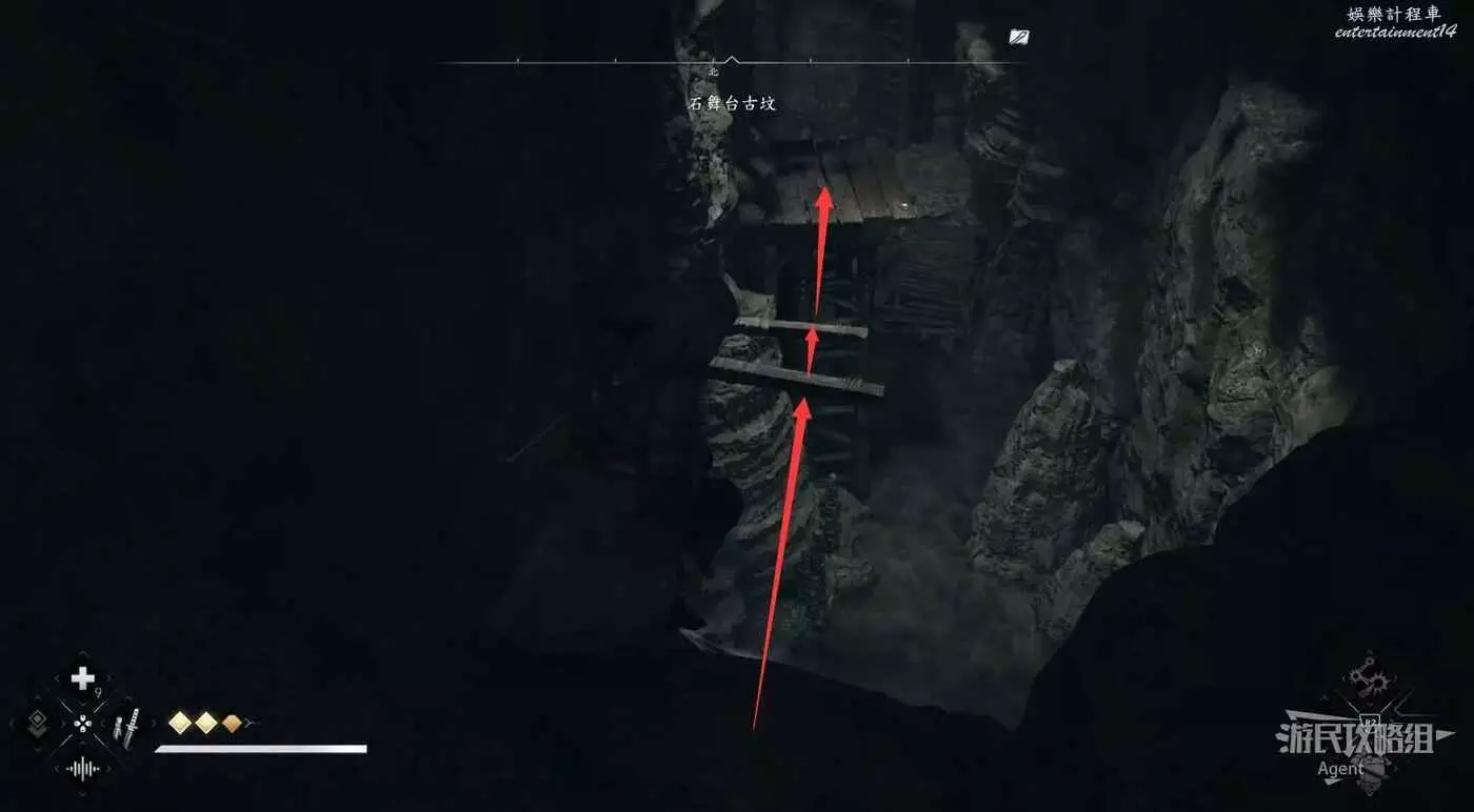 或者實在跳不過去的話,落到下面後可以爬木杆上去,直接抵達對面木板平台上。