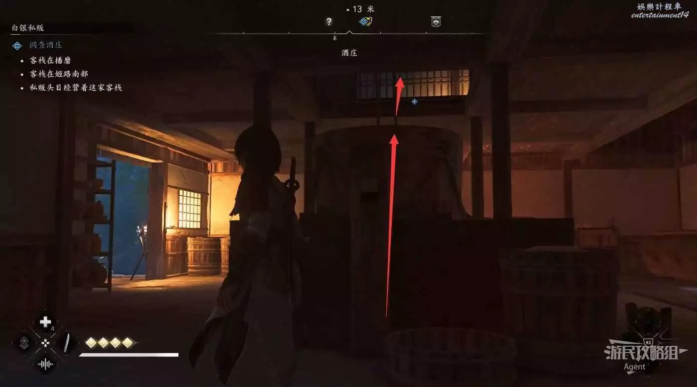 刺客教條 暗影者 白銀私販支線任務攻略 5 4 月 2025-04-05 廣告 作者:Agent 來源:遊民星空 支線-白銀私販 到丹波找細川藤孝。 到案發現場跟隨血跡進入洞中,刺殺審訊者。 然後去刺殺鐵炮商人和奴隸主。經過調查得知奴隸主在海邊的船上。 然後去刺殺剩下的私販。 在酒莊調查私販頭目時,需要從大酒缸爬上去。有點難爬,需要多試試。