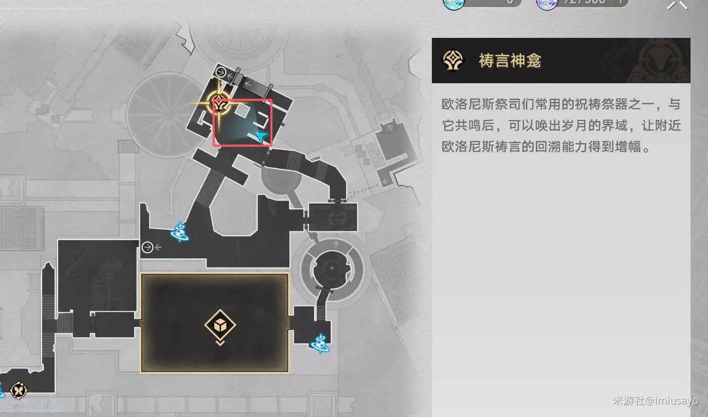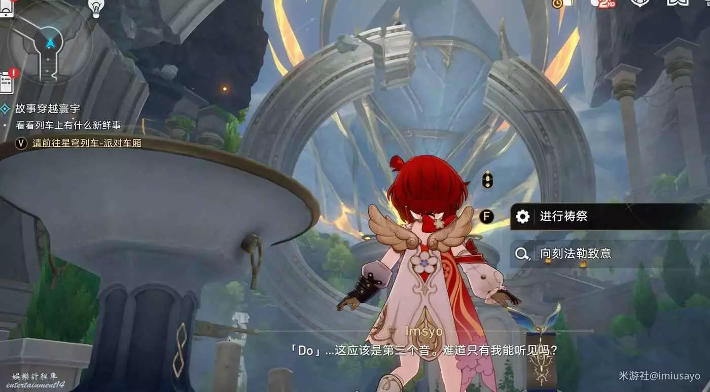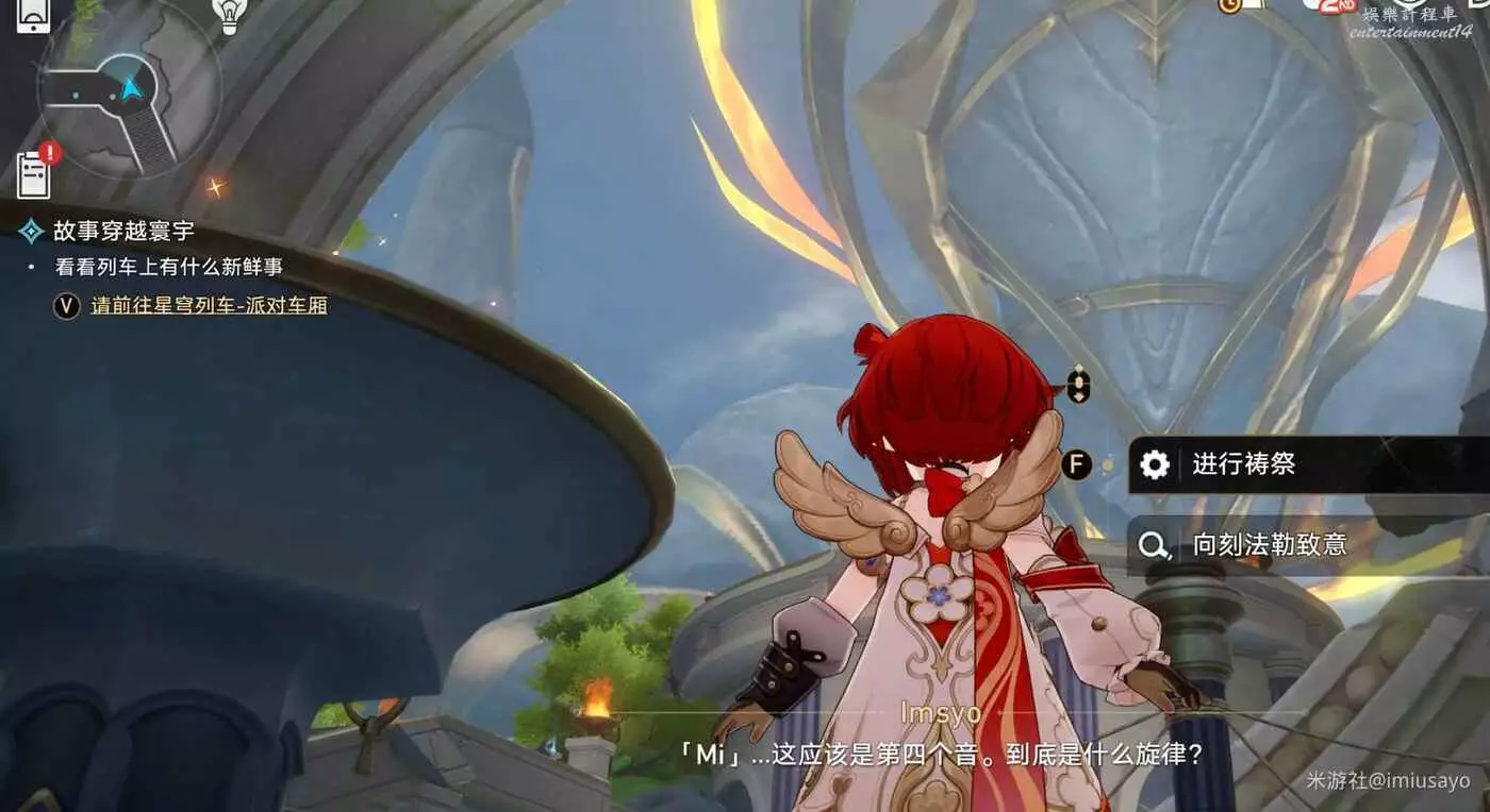 在對應位置向刻法勒致意會聽到不同的旋律,其關係見下圖,按若蟲提示的順序致意即可。