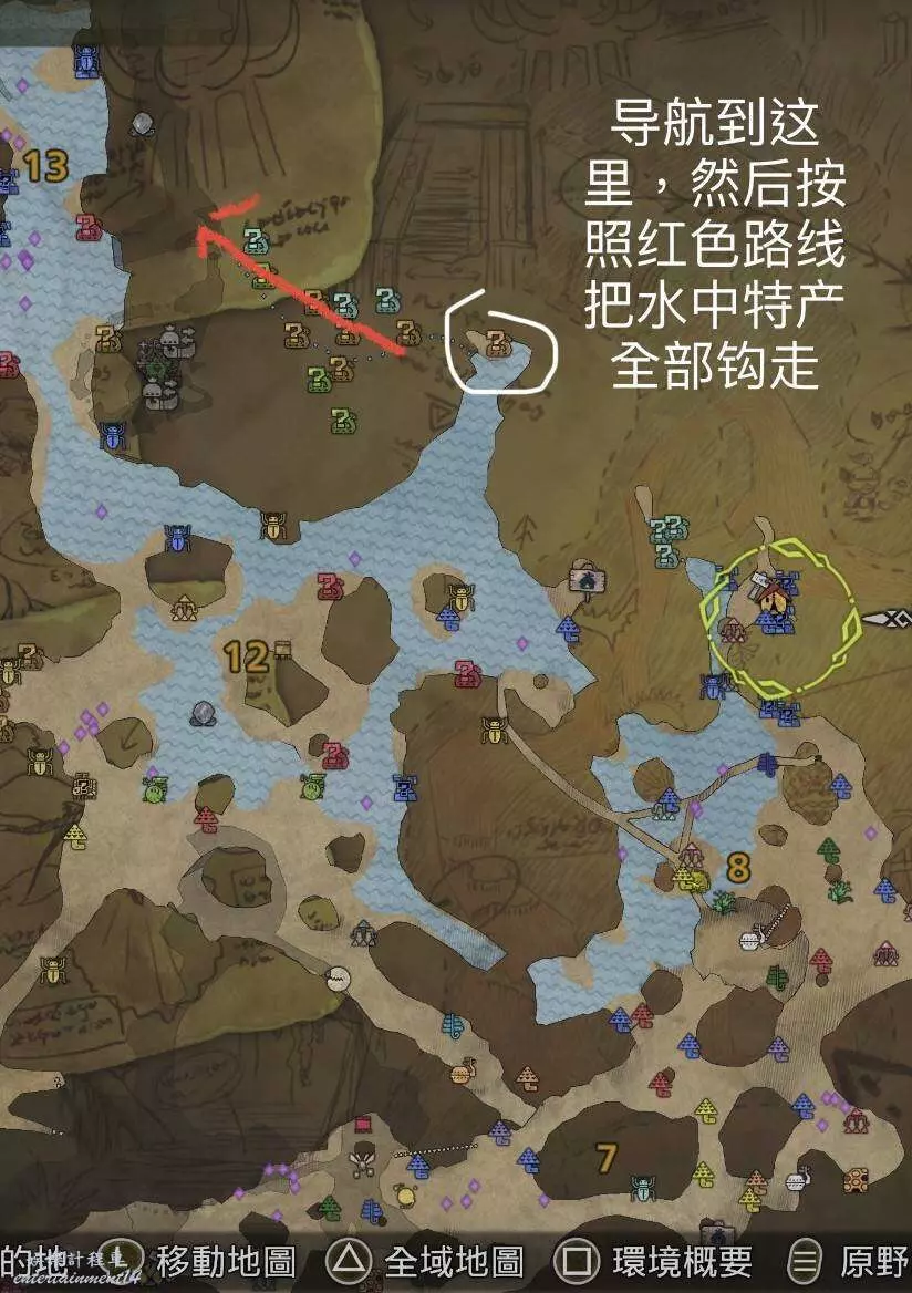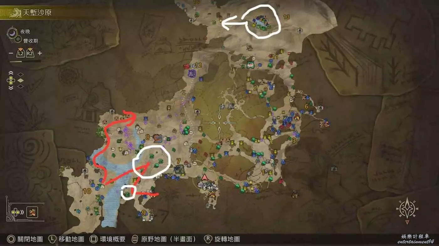 ①地圖顯示有稀有巨大特產資訊;