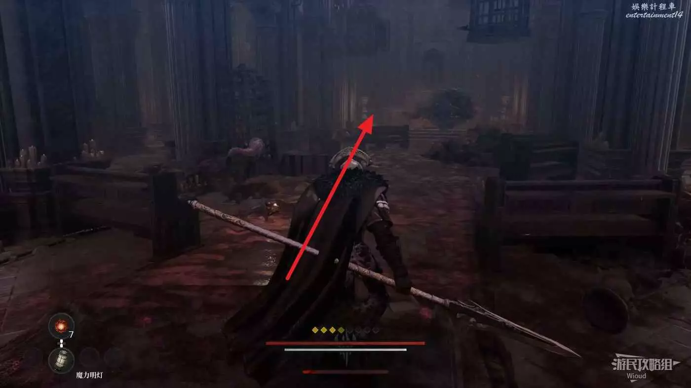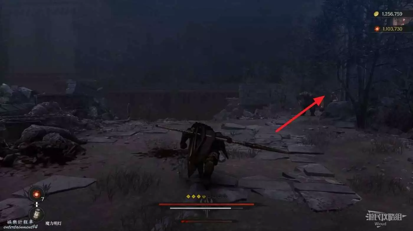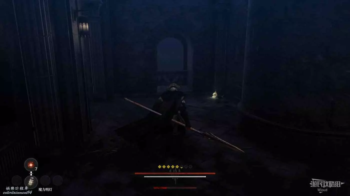 完事進入下圖所示拱門內,與拱門另一側的屍體互動獲得【靈魂碎片】,屍體旁機關互動落下木橋開啟近路。