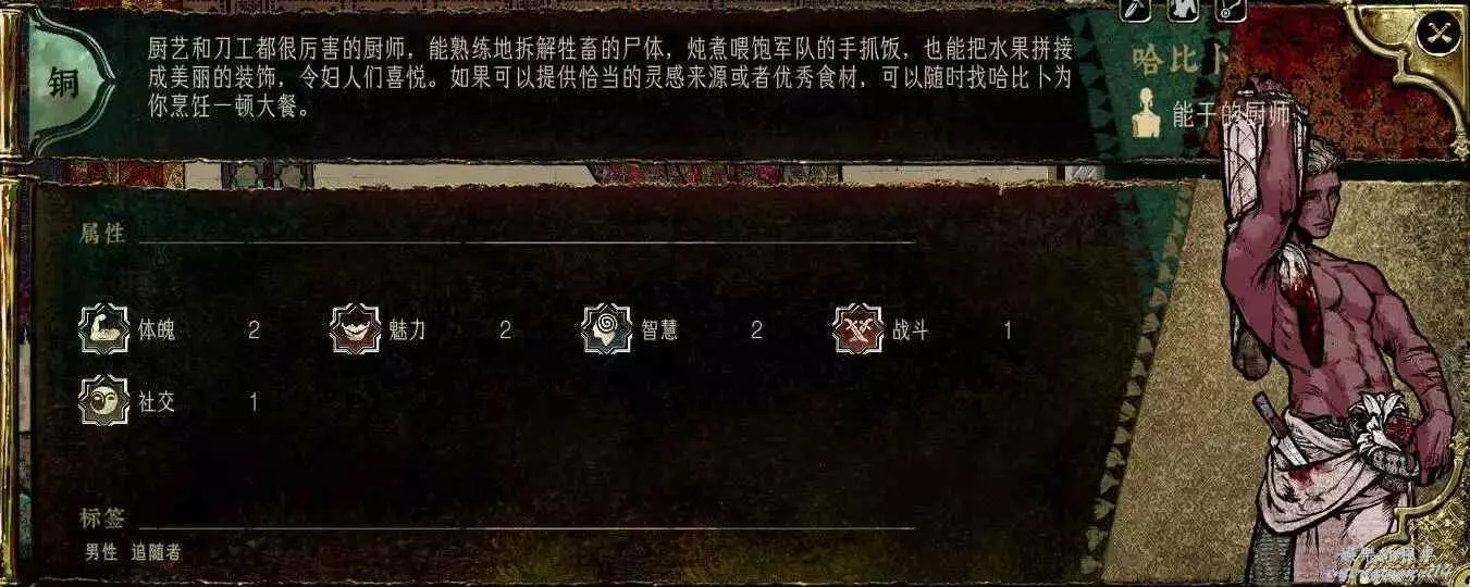 跟瑪希爾不一樣,廚子不需要化妝和屬性,只需要錢,做飯就完事了,雖然有成本,但是回報效率比哈桑高太多,這回合做,下回合就見效。一飯四吃,多來幾條鱷魚山師,貓貓也能撅翻蘇丹!入隊簡單,效率高,沒有基礎屬性要求,這就是我們機制怪,你們有這種機制怪嗎。(但只能吃魅力,社交,生存,體魄類的菜,戰鬥主要靠鱷魚和山獅)