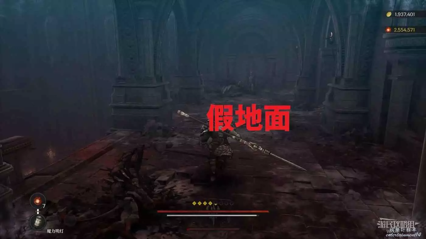 走到盡頭走廊左拐,通過盡頭梯子爬下去,當看到走廊前方站著兩個只會遠端攻擊的怪物,注意他們前面的地面會直接坍塌。