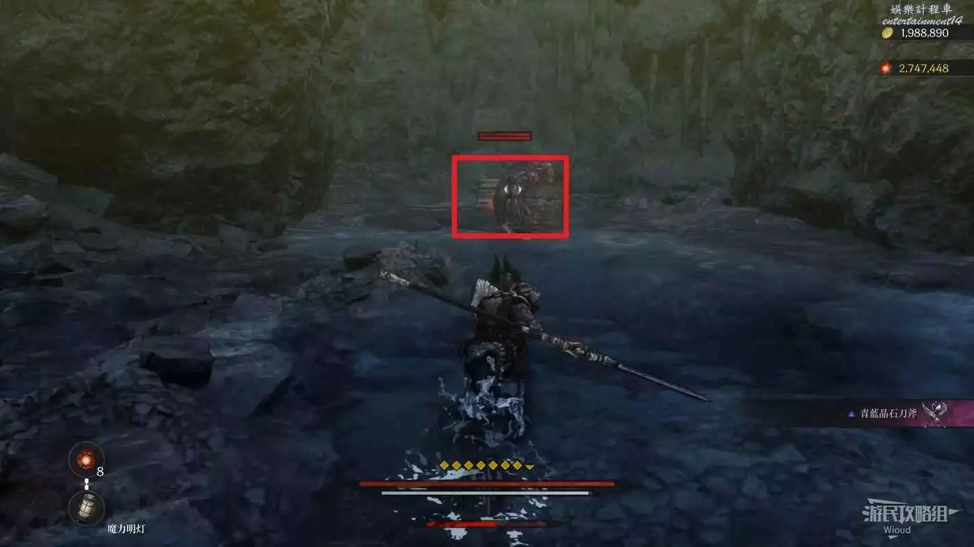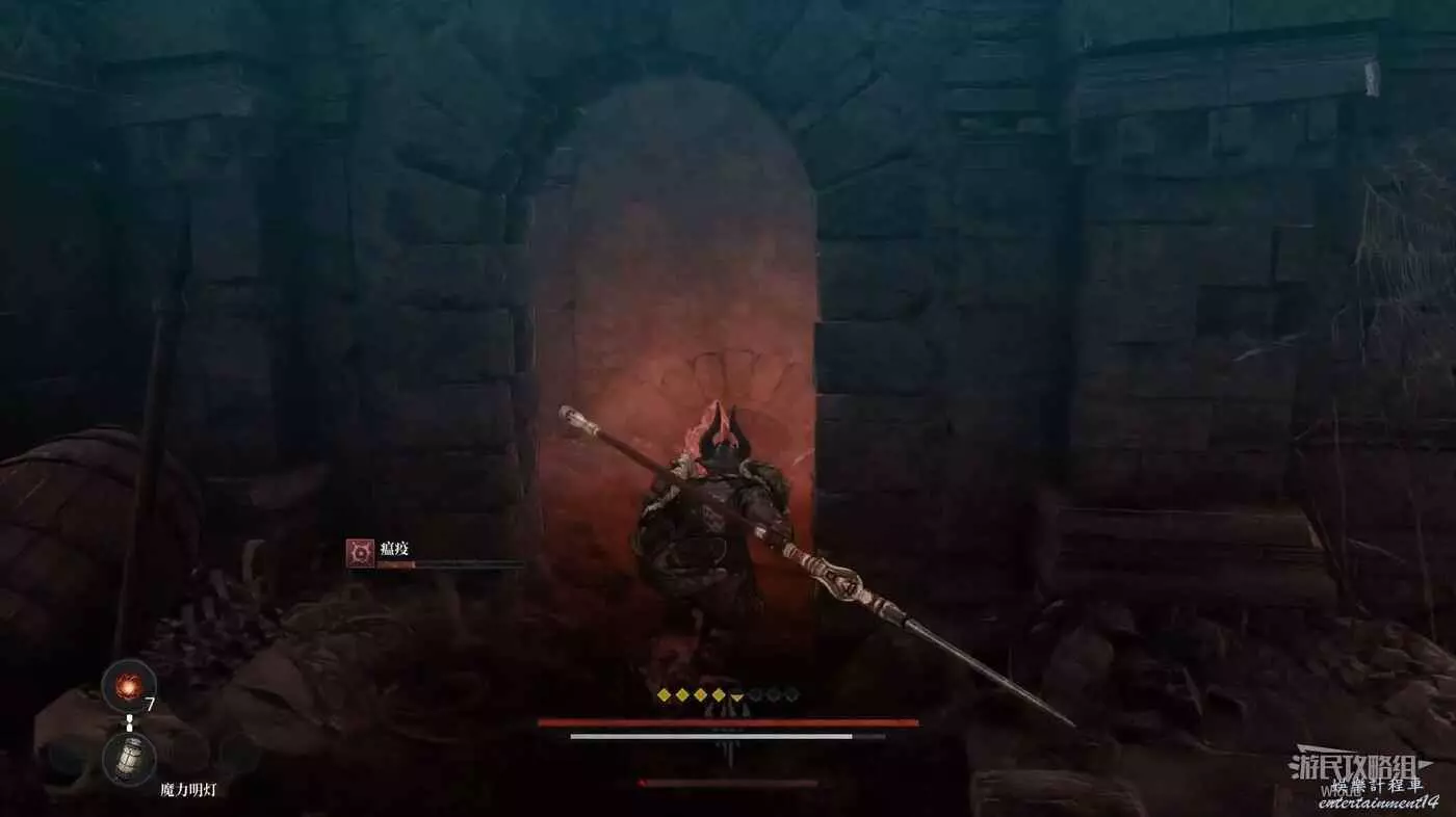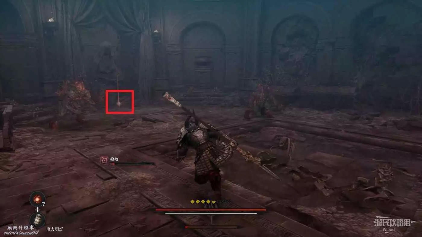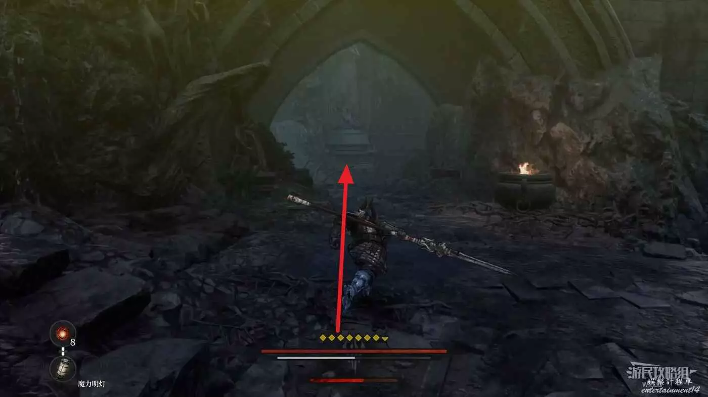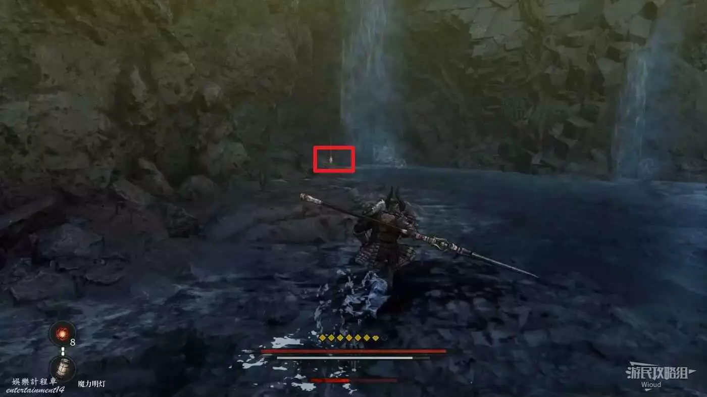 開啟唯一的柵欄門走到前方拐彎處,主要右側是一個假牆,裡面可以找到一個【鬼石】。
