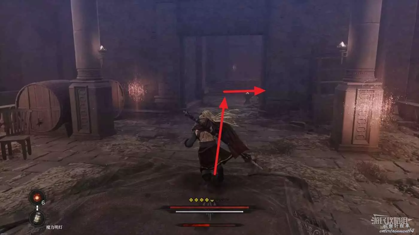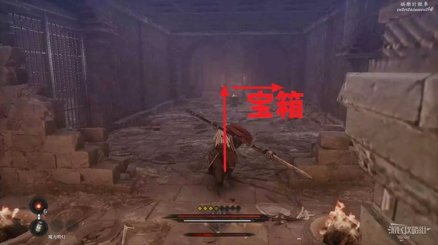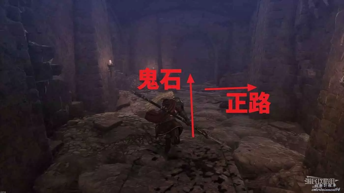 先啟動前方的篝火,與旁邊的特利斯坦對話,繼續往後走,擊敗兩個怪物會,直走進入前方房間,裡面可以破壞一個【鬼石】。