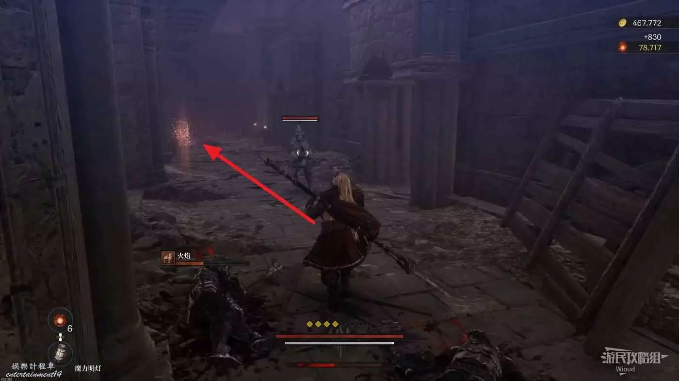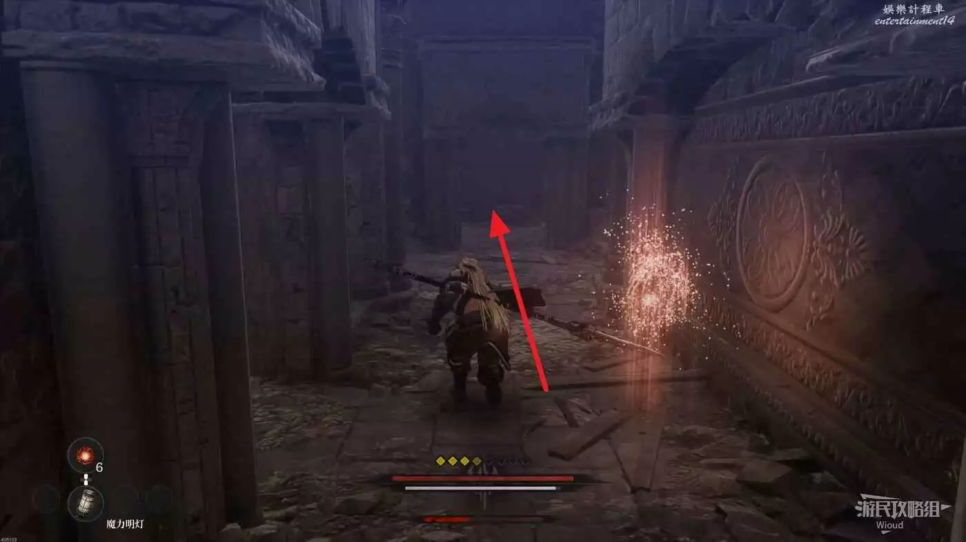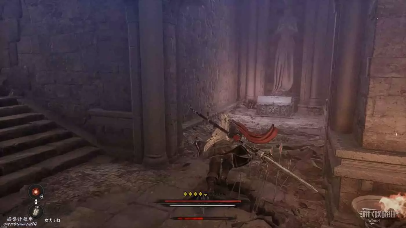 回到走廊,左前方可以拿到一個【靈魂淚石碎片】並開啟左側的柵欄門啟動近路。