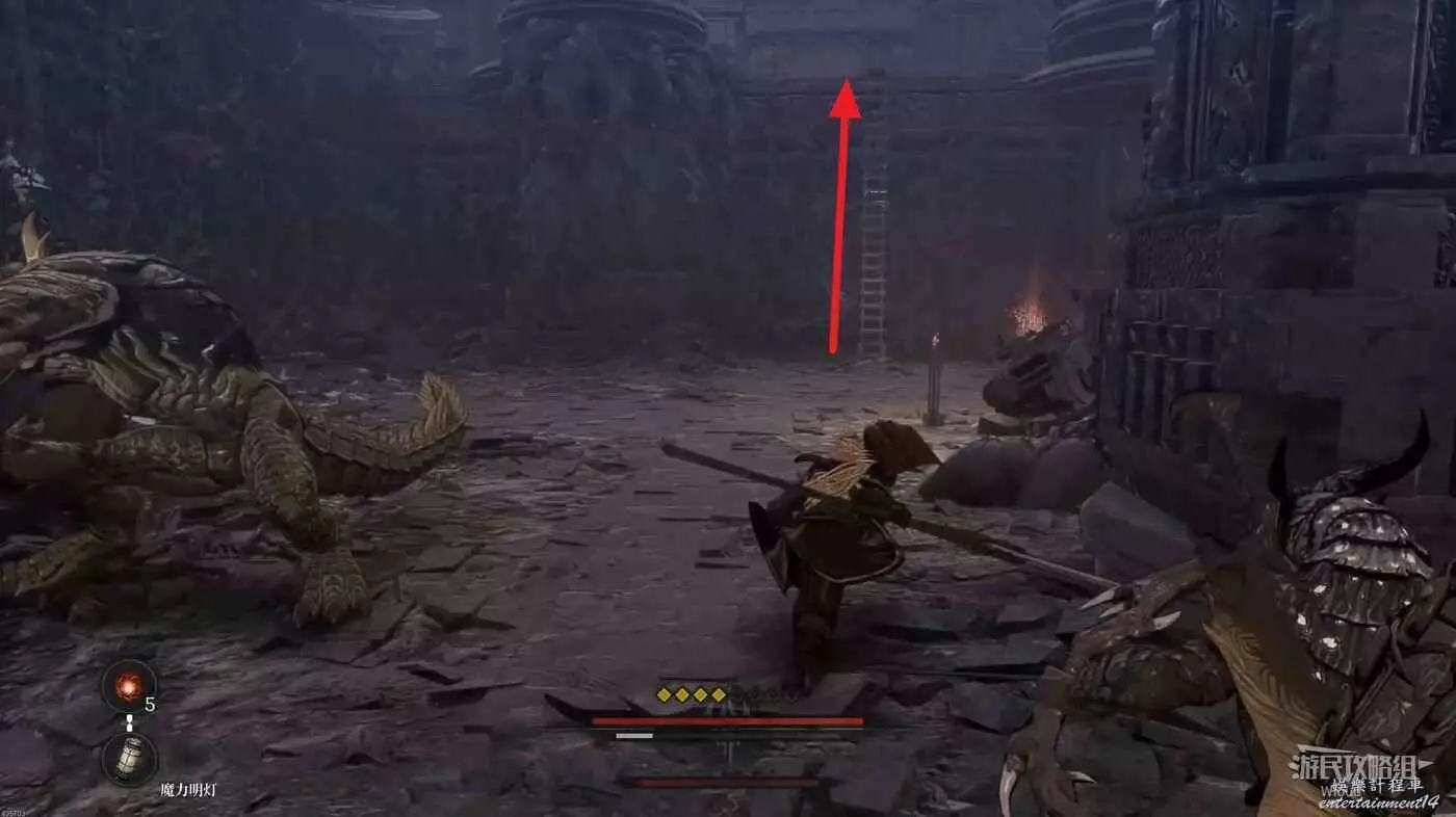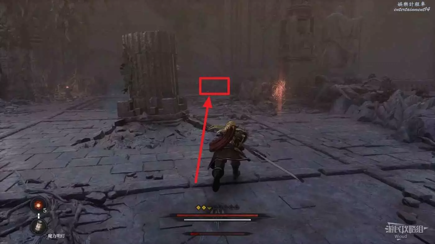 完事轉頭進入盡頭電梯,啟動下一個篝火,直走到盡頭右側角落的罐子是本地圖罐子精靈的位置。