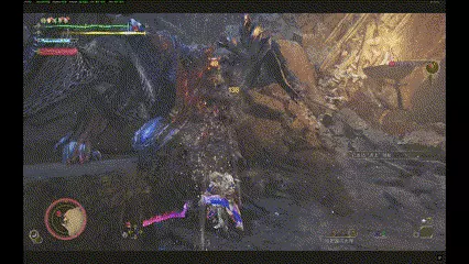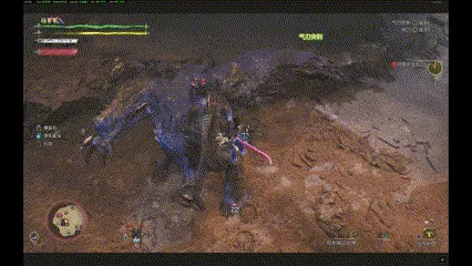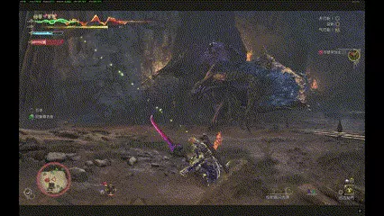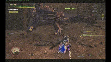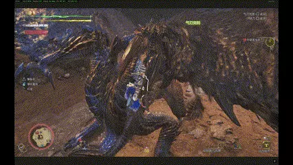 起飛+吐息+側面落地+回首掏:這個連段是黑蝕龍的第二種飛天落地方式,只有在狂龍模式下才會出這個連段,落地前會嚎叫,可以通過嚎叫聲來預警。採取居合的方式來接它的回首掏,或者用氣刃突刺霸體去抗回首掏來登龍處理。