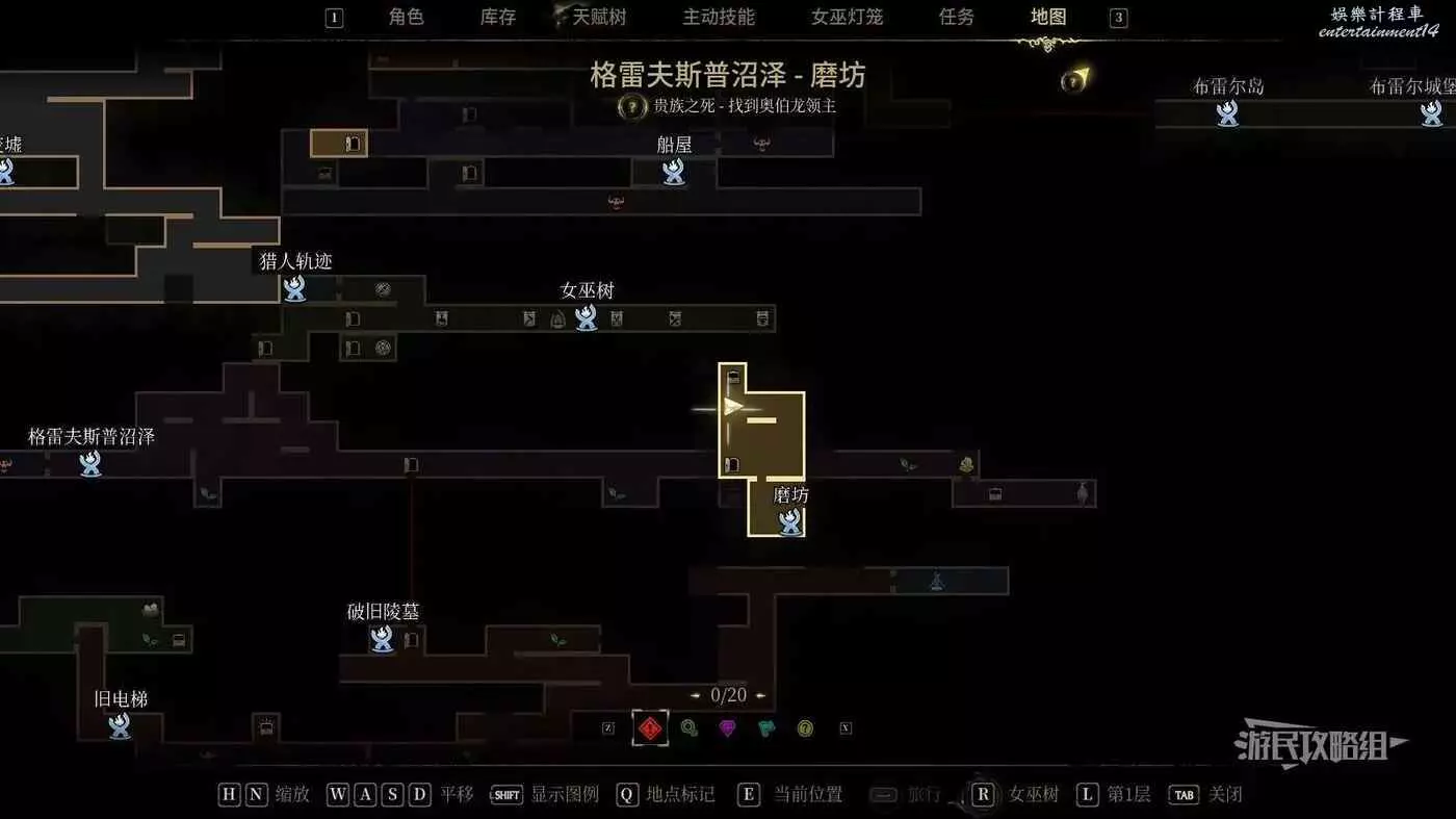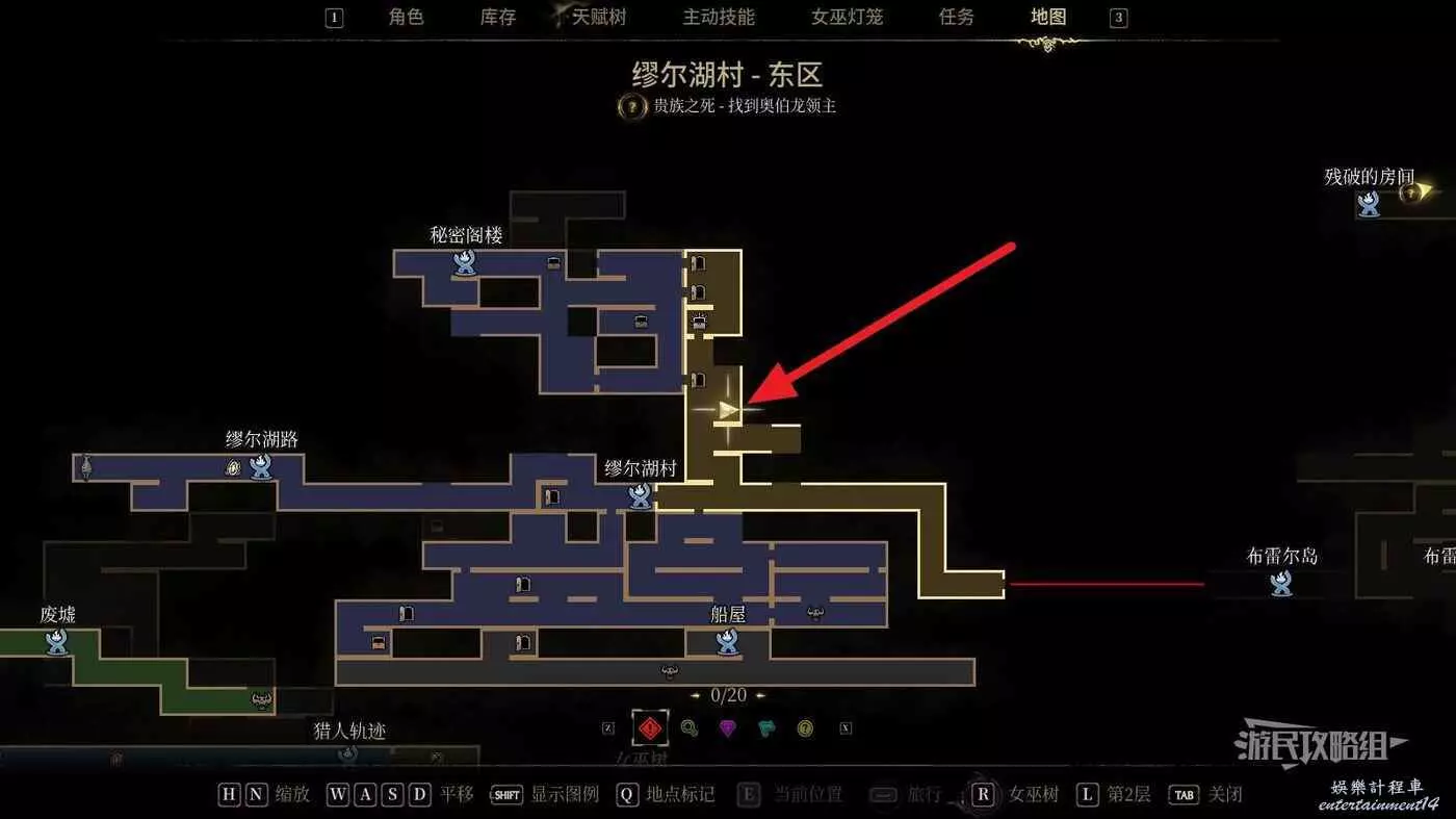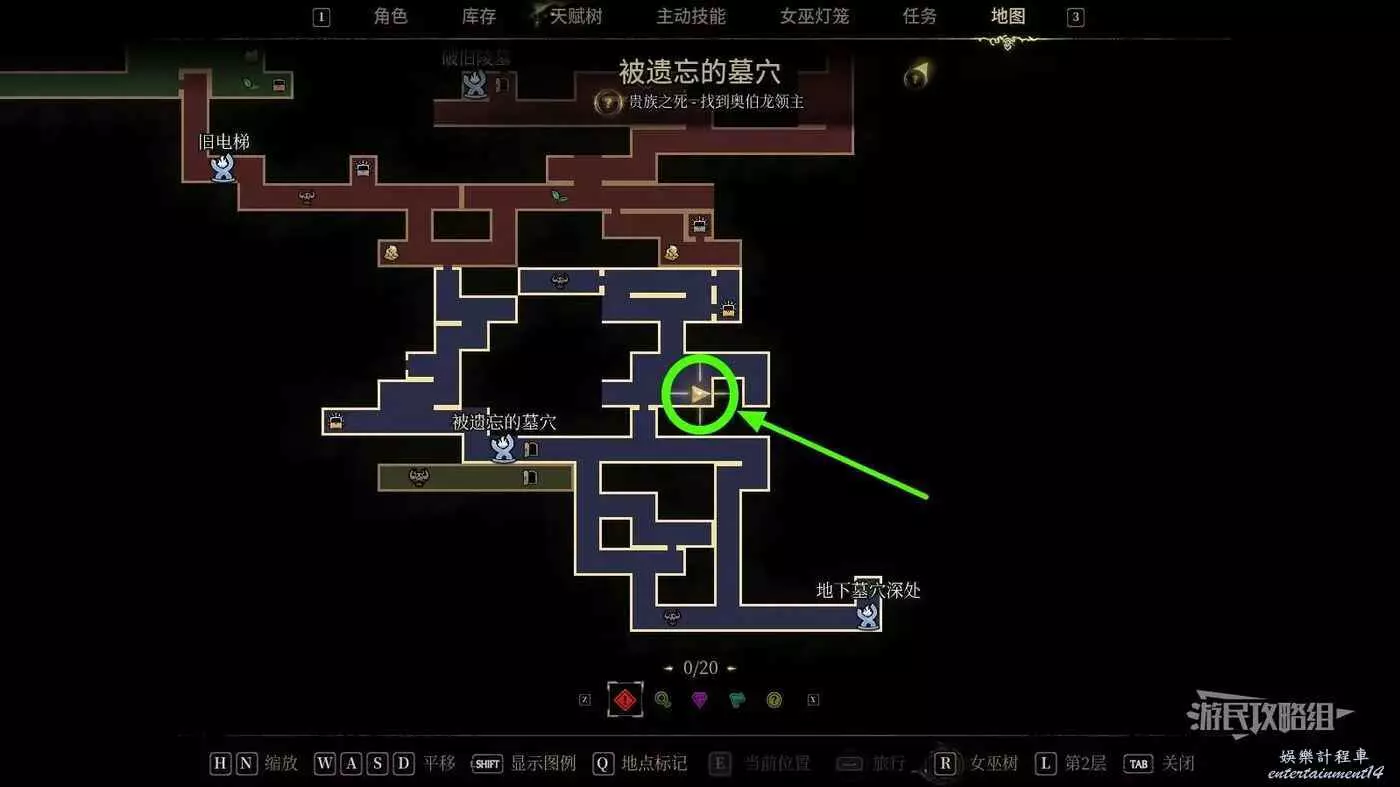 注意首次來這個區域時,右側的門是鎖著的,需要從女巫石的位置往右上方走,從上方的門進入繞一圈回來就能看到(請參考下方地圖)。
