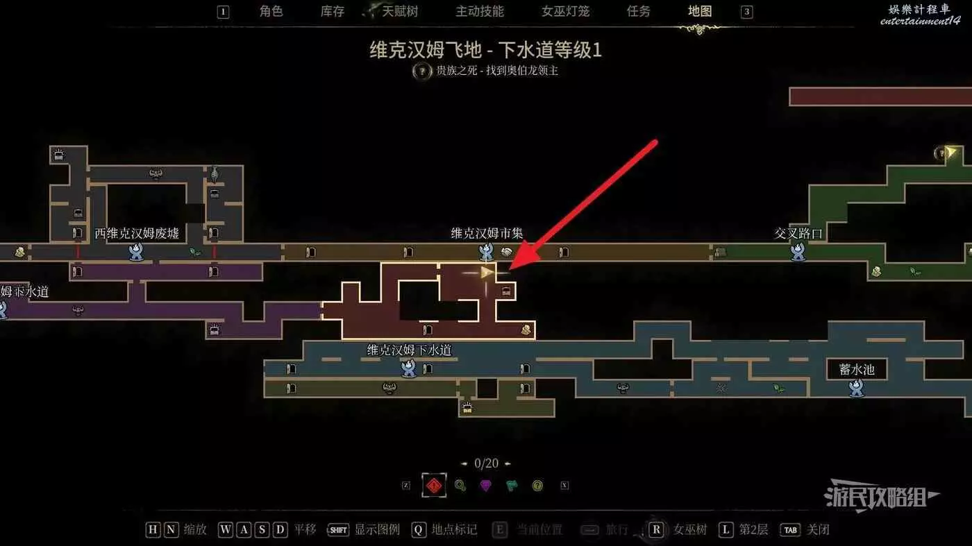 傳送到維克漢姆市集女巫石,往左走過橋進入守衛看守的房間來到下水道區域。之後的路線為:爬梯子往下走→往左走到底層→往右走遇到梯子就爬梯子往上走→往左走躲避陷阱→看到梯子繼續往上爬→往右跳到骷髏所在平台即可獲取。