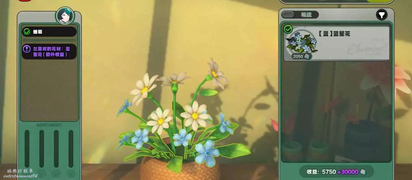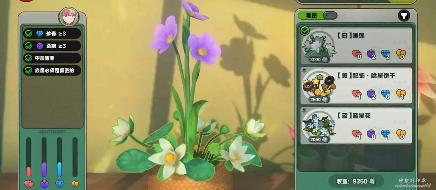 2,阿嵐的花藝委託(任意,紫花地丁,空置,睡蓮(稠密))