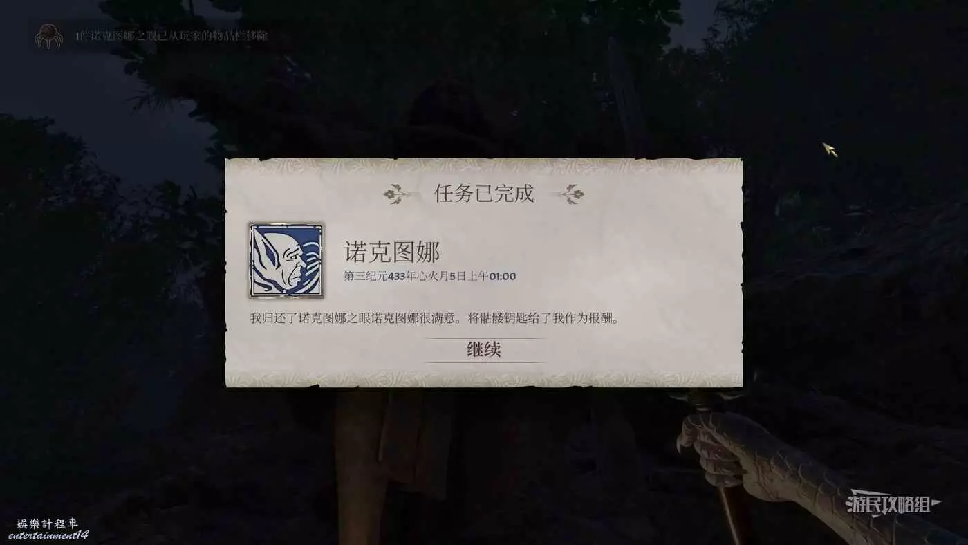 成功拾取之後,離開洞穴,傳送回諾克圖娜神龕,再次與神龕互動即可永久獲得【骷髏鑰匙】。