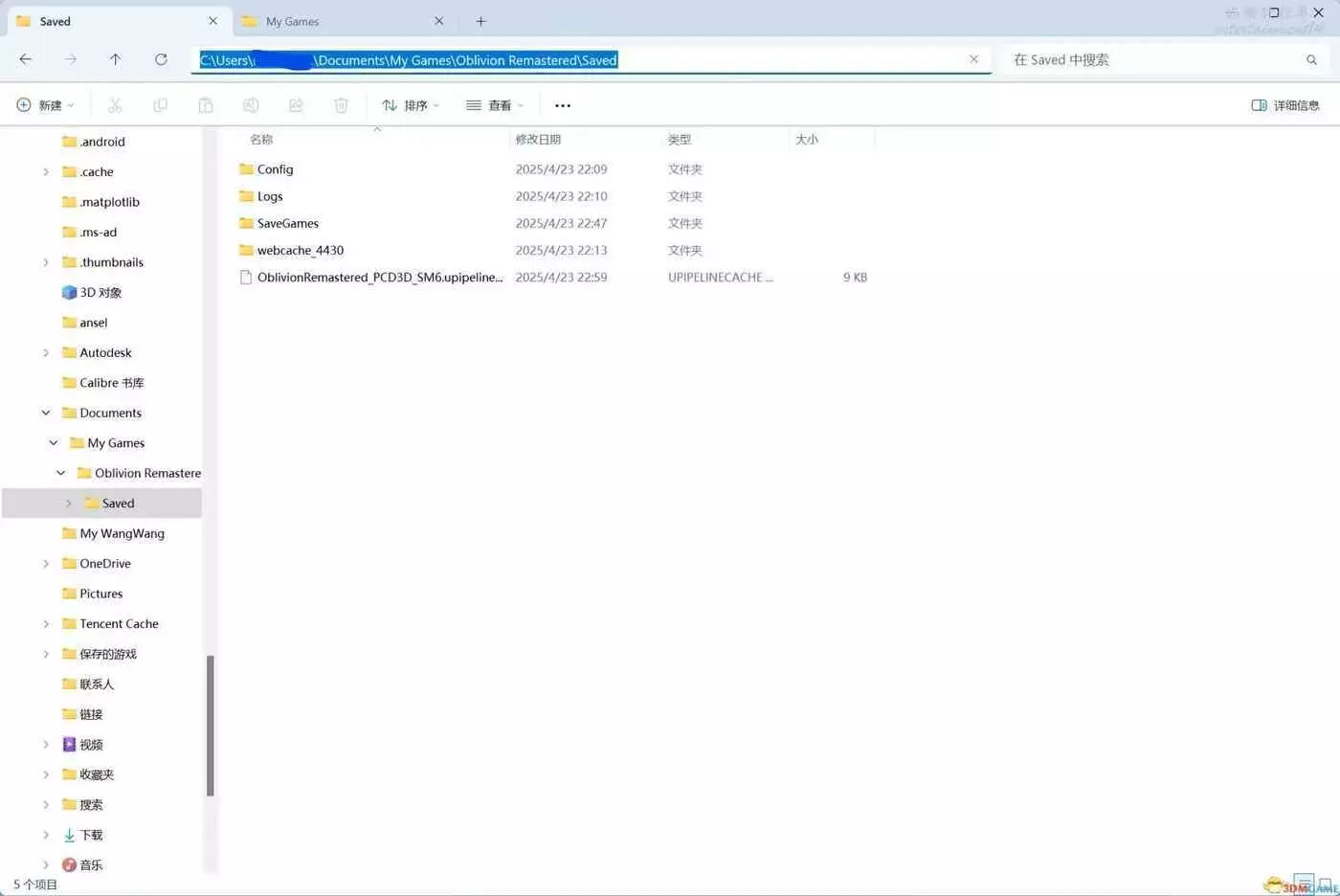 C:\Users\你的用戶名\Documents\My Games\Oblivion Remastered\Saved