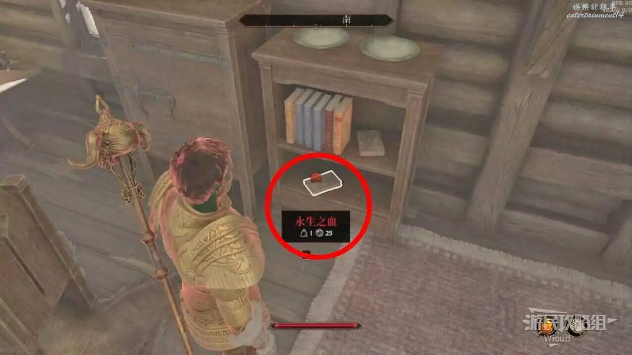 進屋之後,在右側的書架上閱讀【永生之血】即可。
