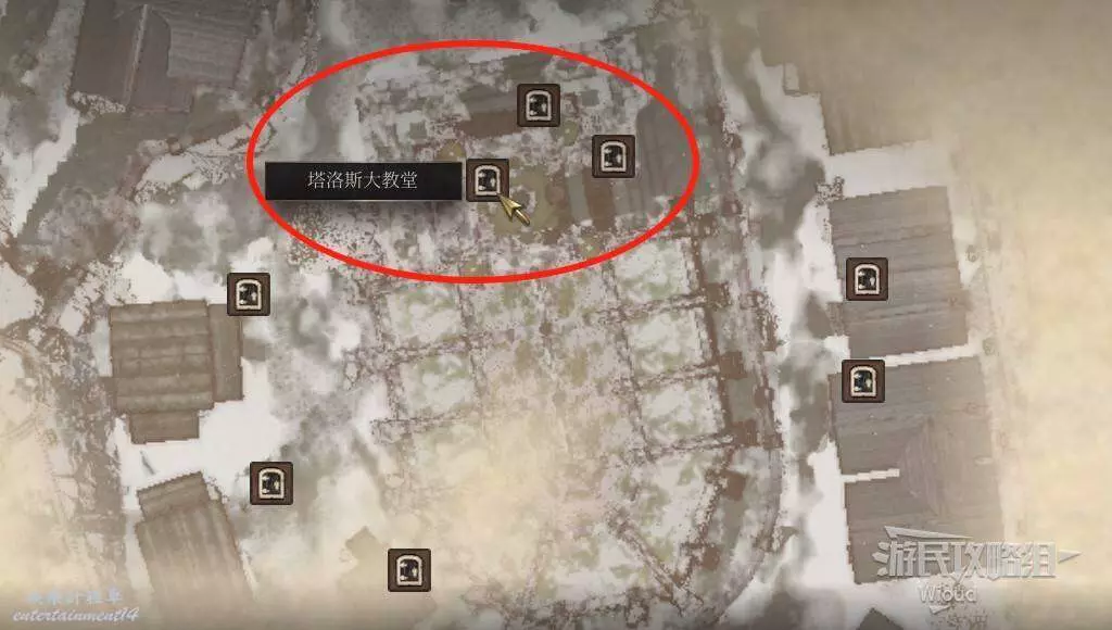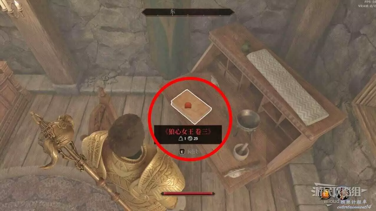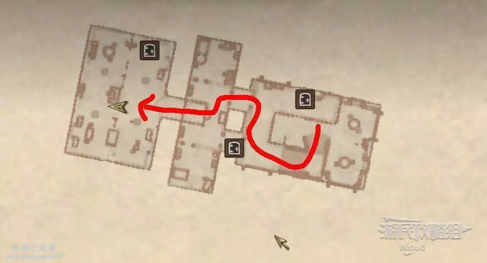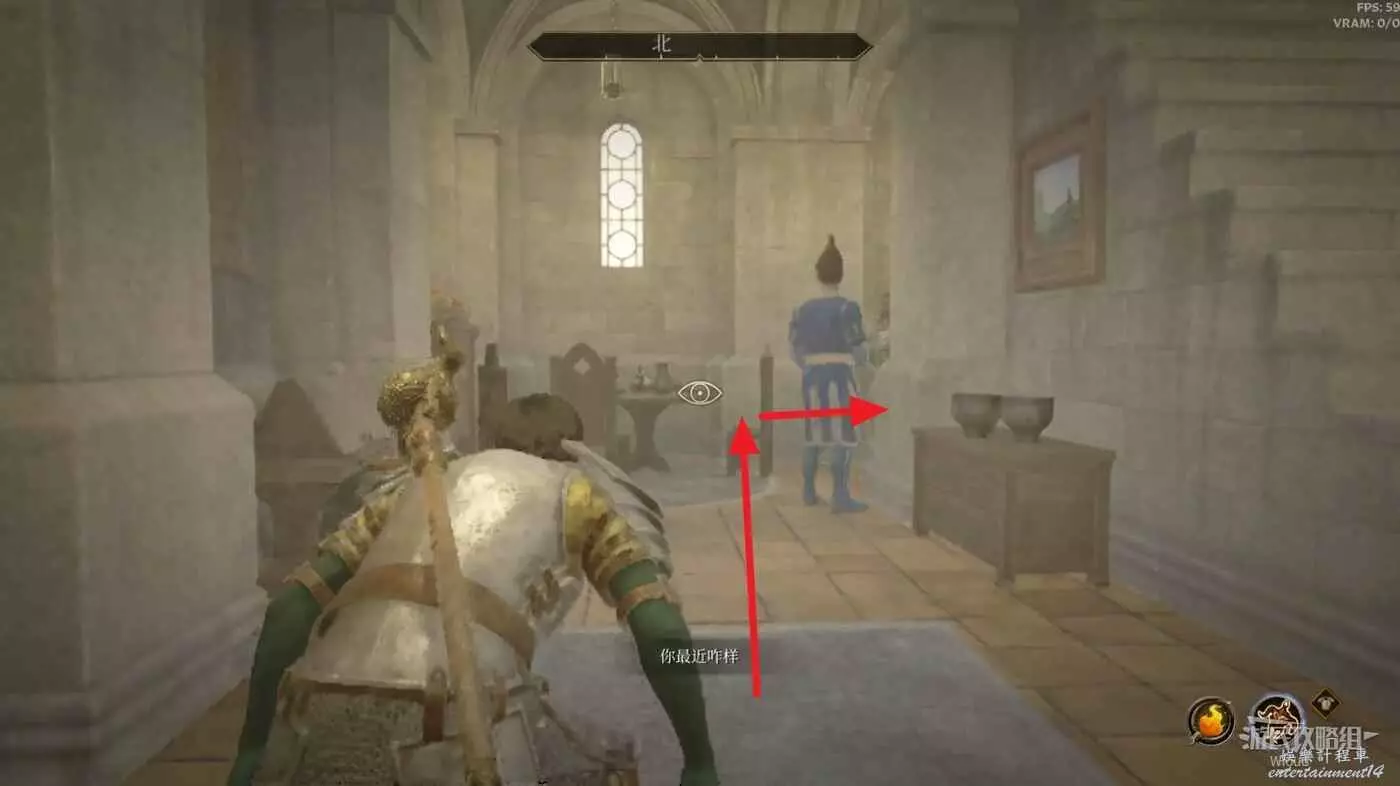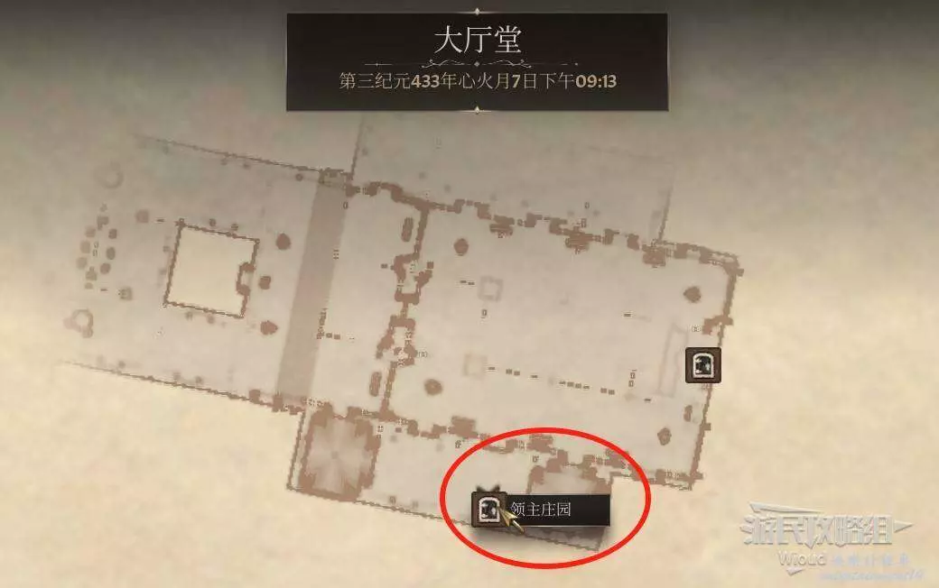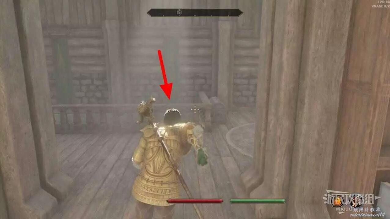 來到領主莊園後,直接通過樓梯來到二樓,打開最深處的屋子,路線如下圖所示。