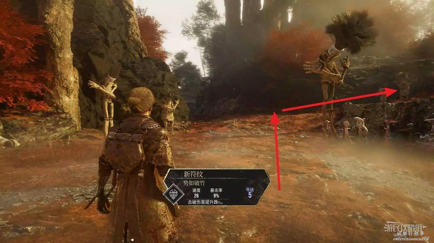 然後上坡往左走,盡頭有個被經怪圍住的道具點,拾取道具點可獲得符紋【標記射擊】。
