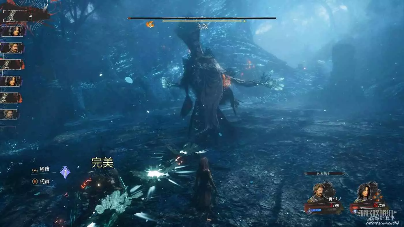 敵人永遠只會使用一招冰封射線,注意敵人蓄力過程,當出現兩次下圖這樣特效後,默數一秒立刻閃避即可完美躲避。
