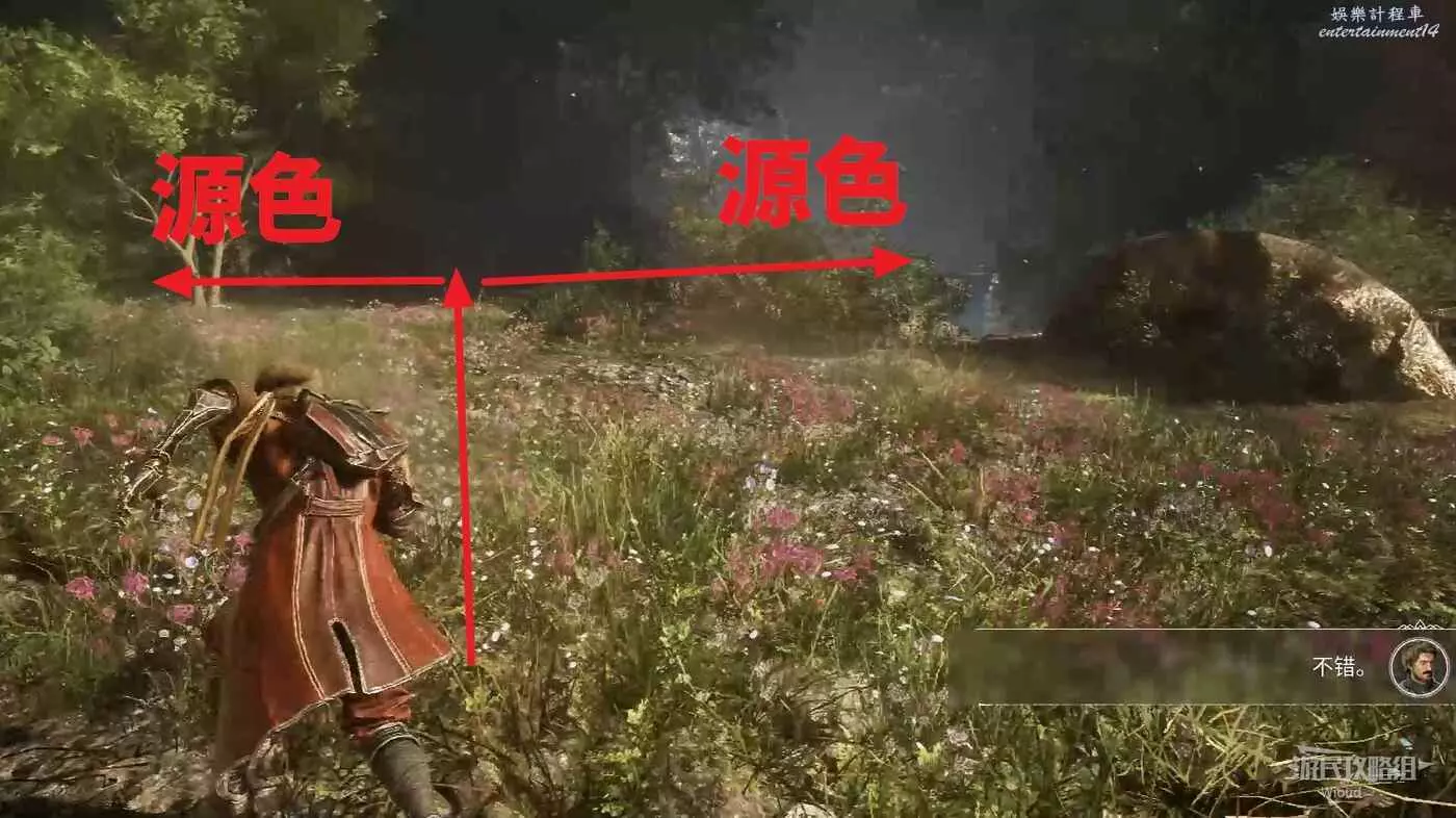前面不遠處有個敵人,右邊有個小道,裡面可以拿一些源色。