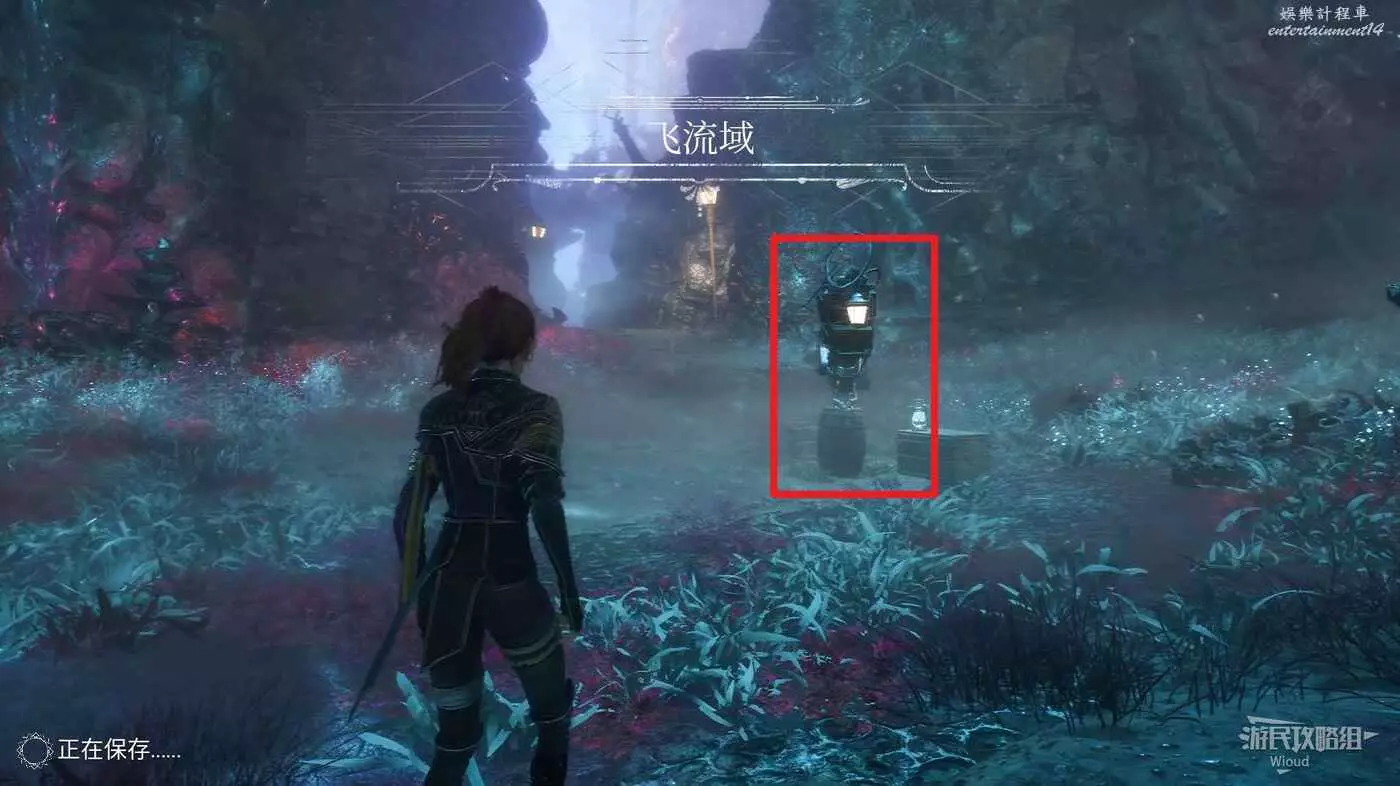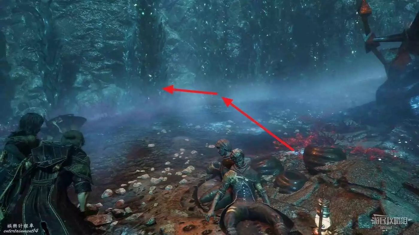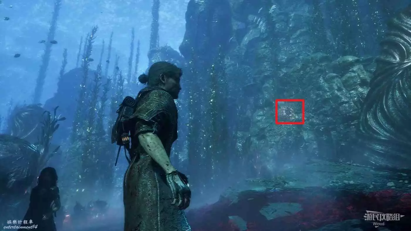 回到路口往右走,爬梯子上去,前進時注意找右側一個全是水藻的過道入口,找到後不著急進去,先直走啟動前方的遠征隊旗幟,再回來進入右側過道。