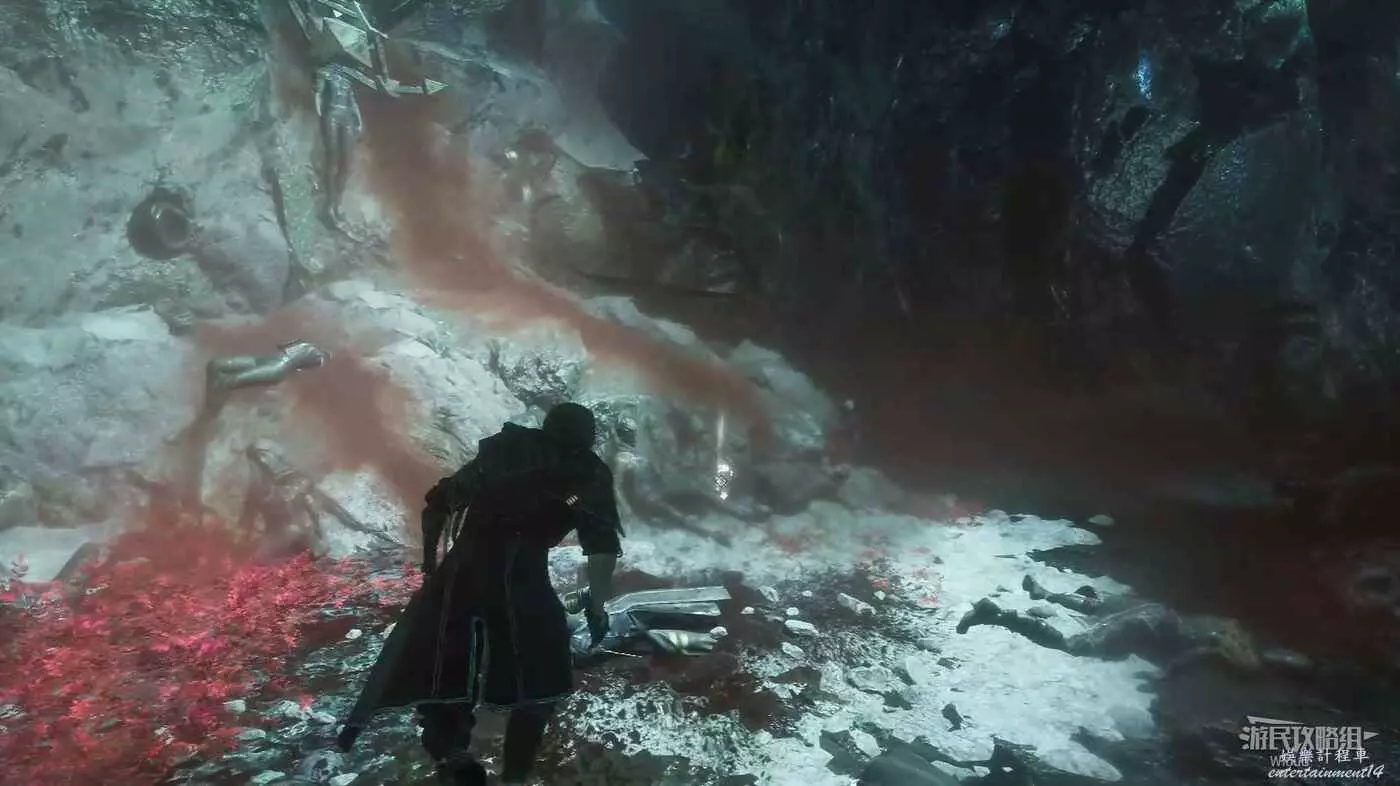 後面右側過道盡頭可以拿到【66號遠征隊日誌】,回到主路走到盡頭通過鉤爪跳到高臺,走到盡頭可拿到符紋【振奮開局·三】。