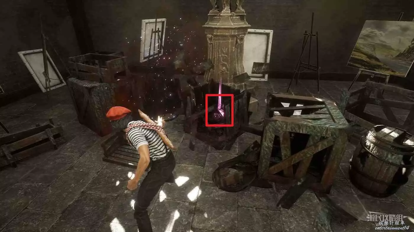 完事往船的右後方移動,可以找到一個繪籠,每個繪籠周圍都分散有三個能量塊,全部破壞掉即可拿到繪籠裡面的東西。