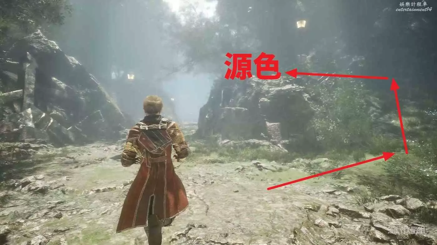 回到道路中間繼續往區域入口方向走,右側有個突出去的道可以撿一些源色。