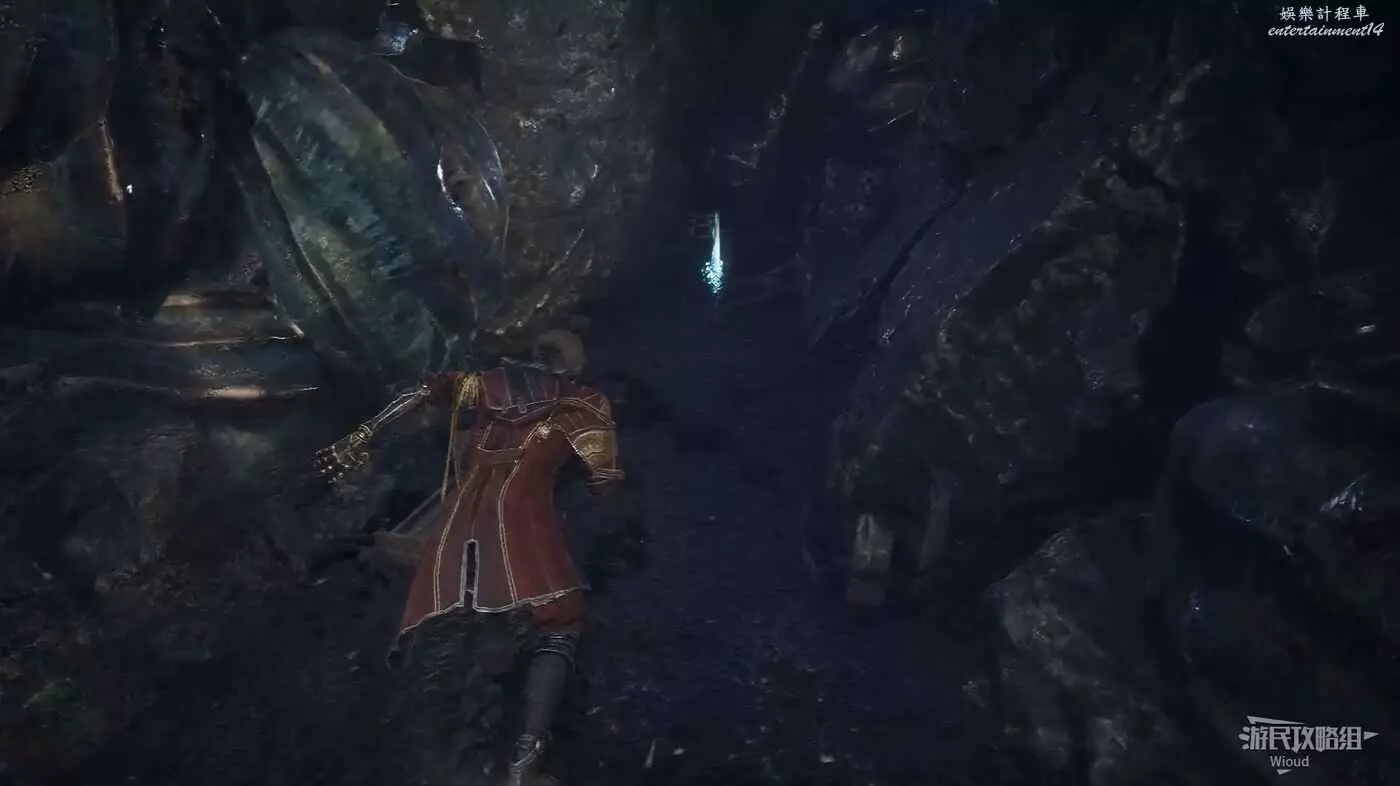 進入洞穴,先不要靠近前面的弗朗索瓦,洞穴入口往右走,有個散發紫光的開口,爬裡面繩索上去沿路往右走。