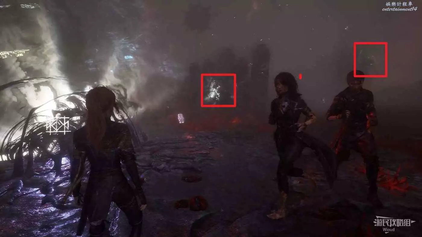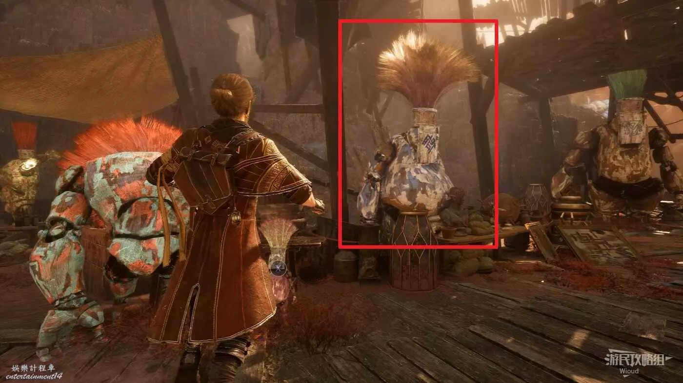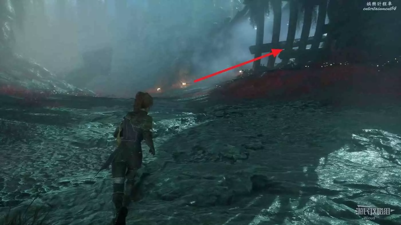 跳下去轉頭背對梯子往左走,通過鉤爪移動到對面平臺往右走,經過第一個梯子找到地圖第二個繪籠。
