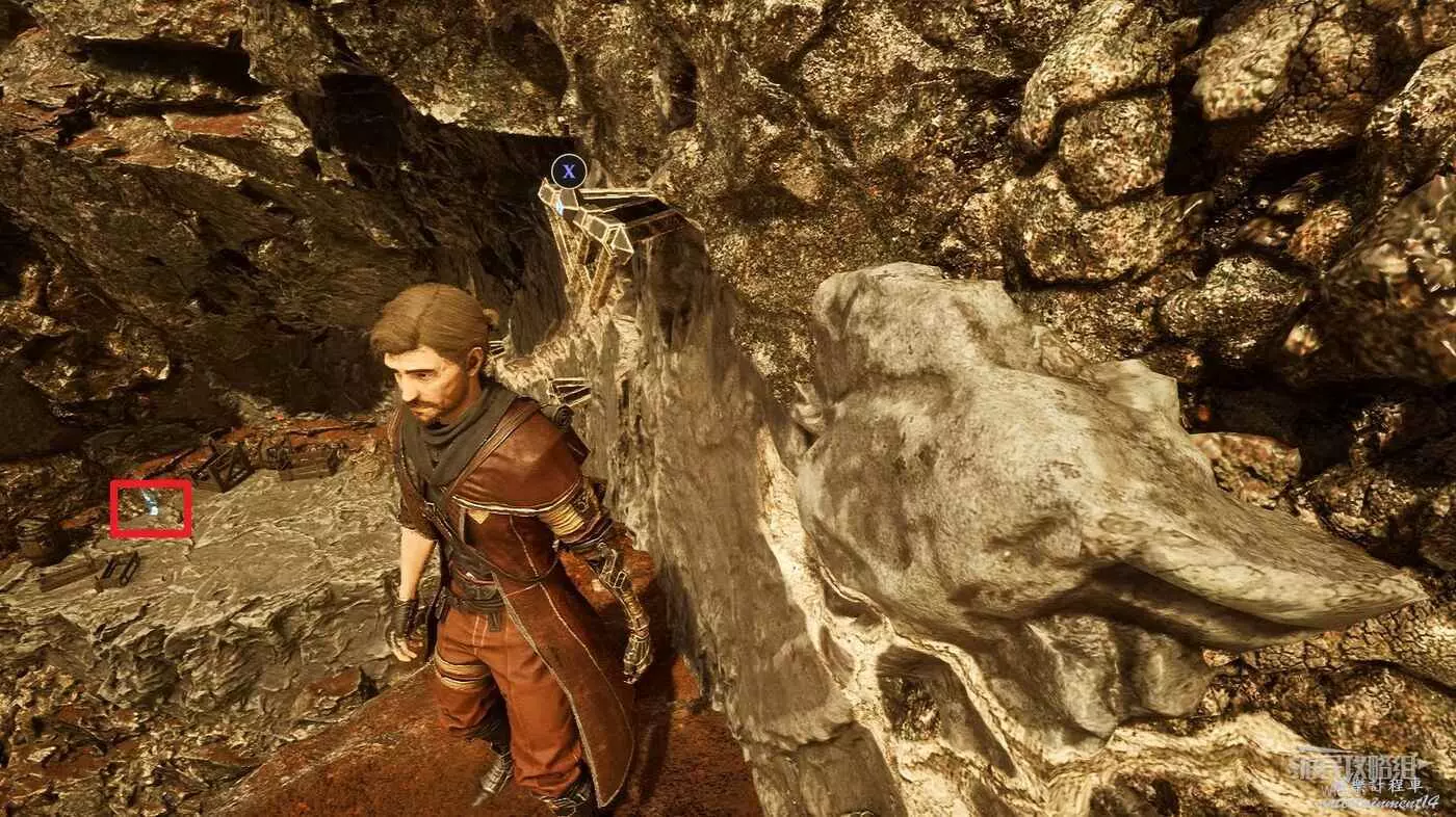 進入遠征隊旗幟旁的隧道,右側第一個凹口有道具可拿。