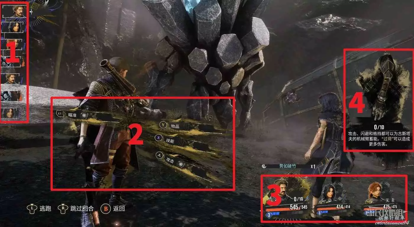 1、可以從此處看到現場所有角色和怪物的行動順序,以便提前規劃後續的行動方向。