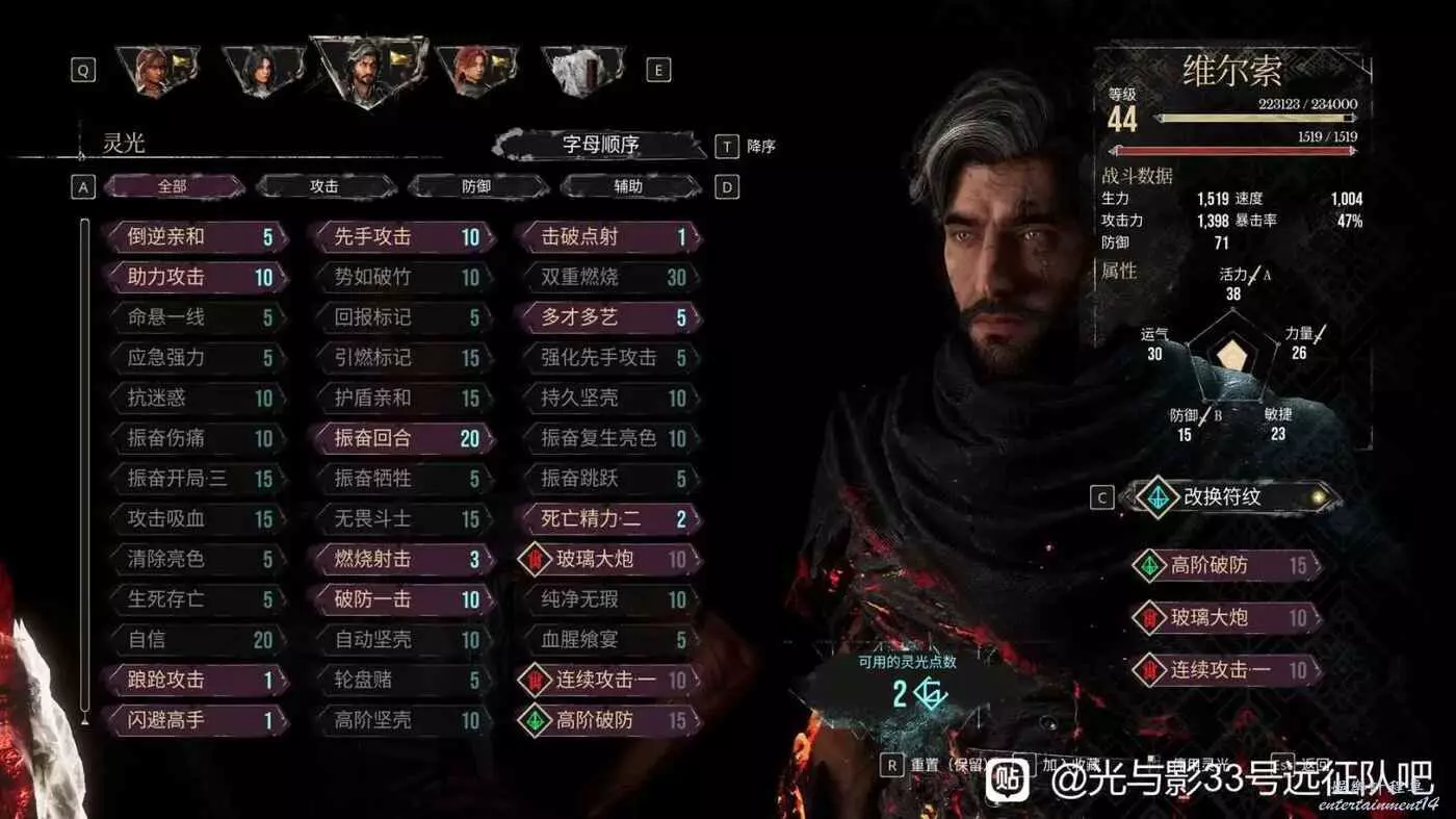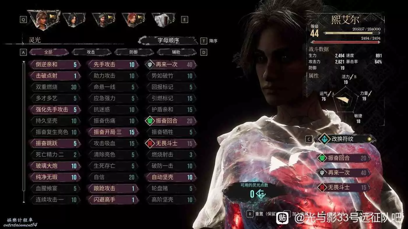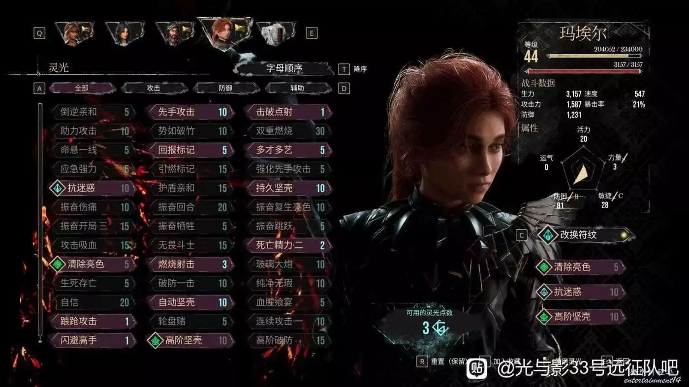 先來講解一下陣容,馬埃爾是主坦,維和熙是雙c,因此馬就純點肉,敏捷和防禦,維和熙力敏運都點