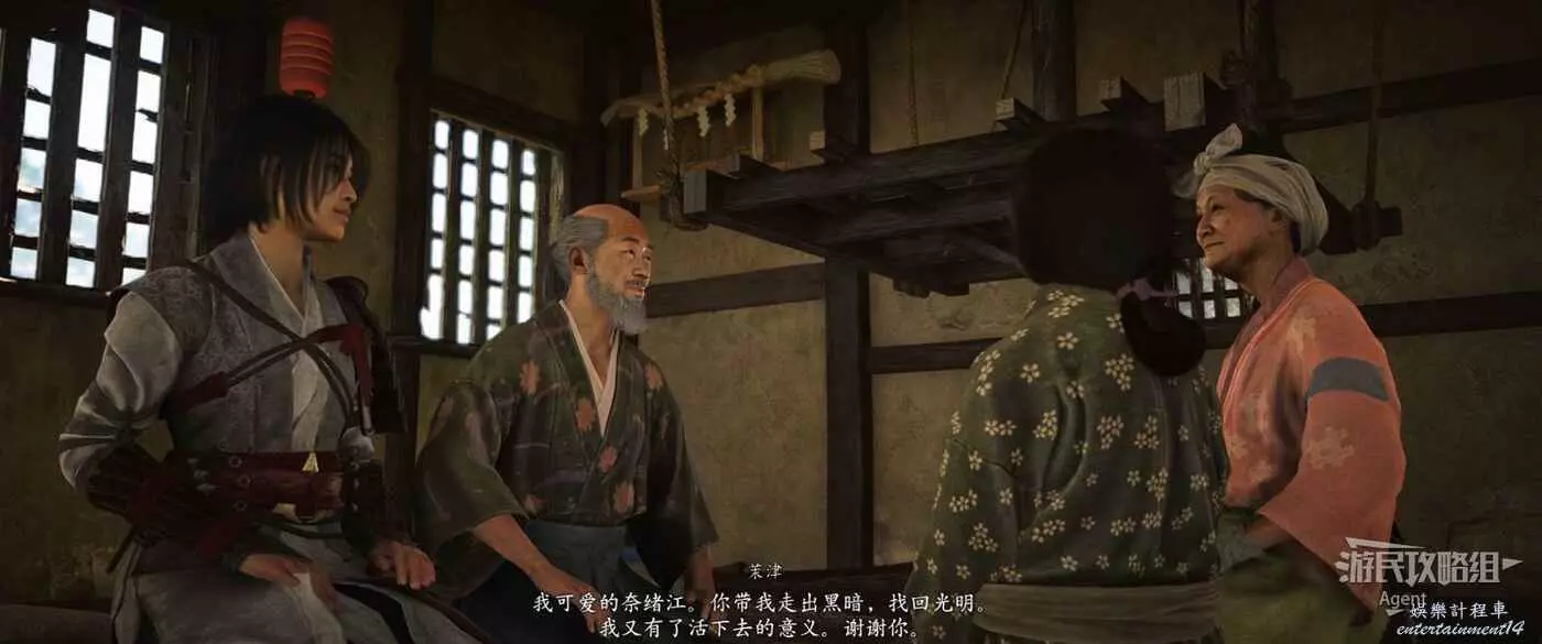 繼續往裡走,擺上盒子,得知母親還沒死,然後見到服部半藏。
