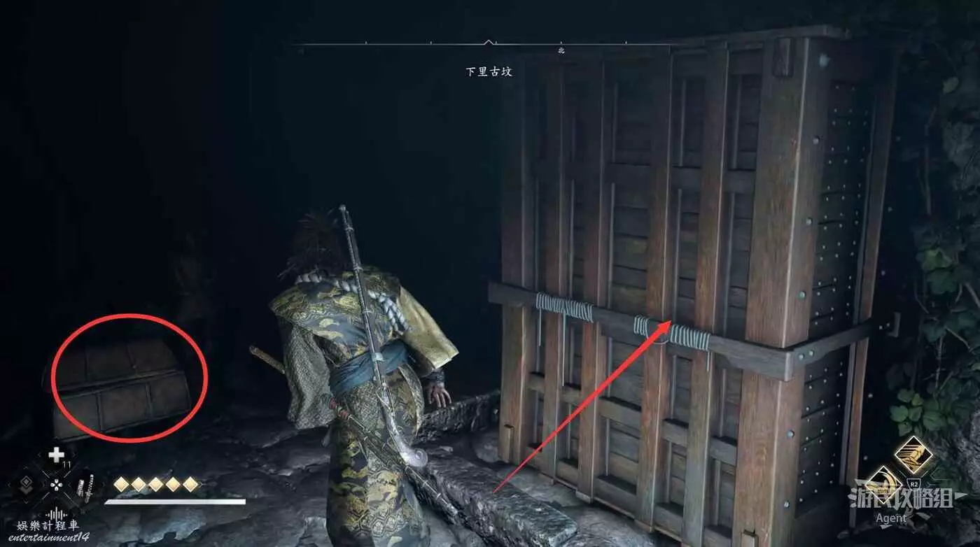 路上拿個小寶箱,然後用炸藥炸開牆壁,裡面有個櫃子。