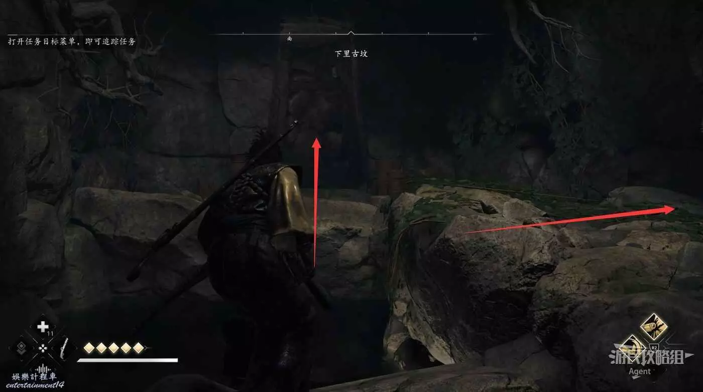 往裡走到頭拿個小寶箱,然後回頭看,爬上去有路。
