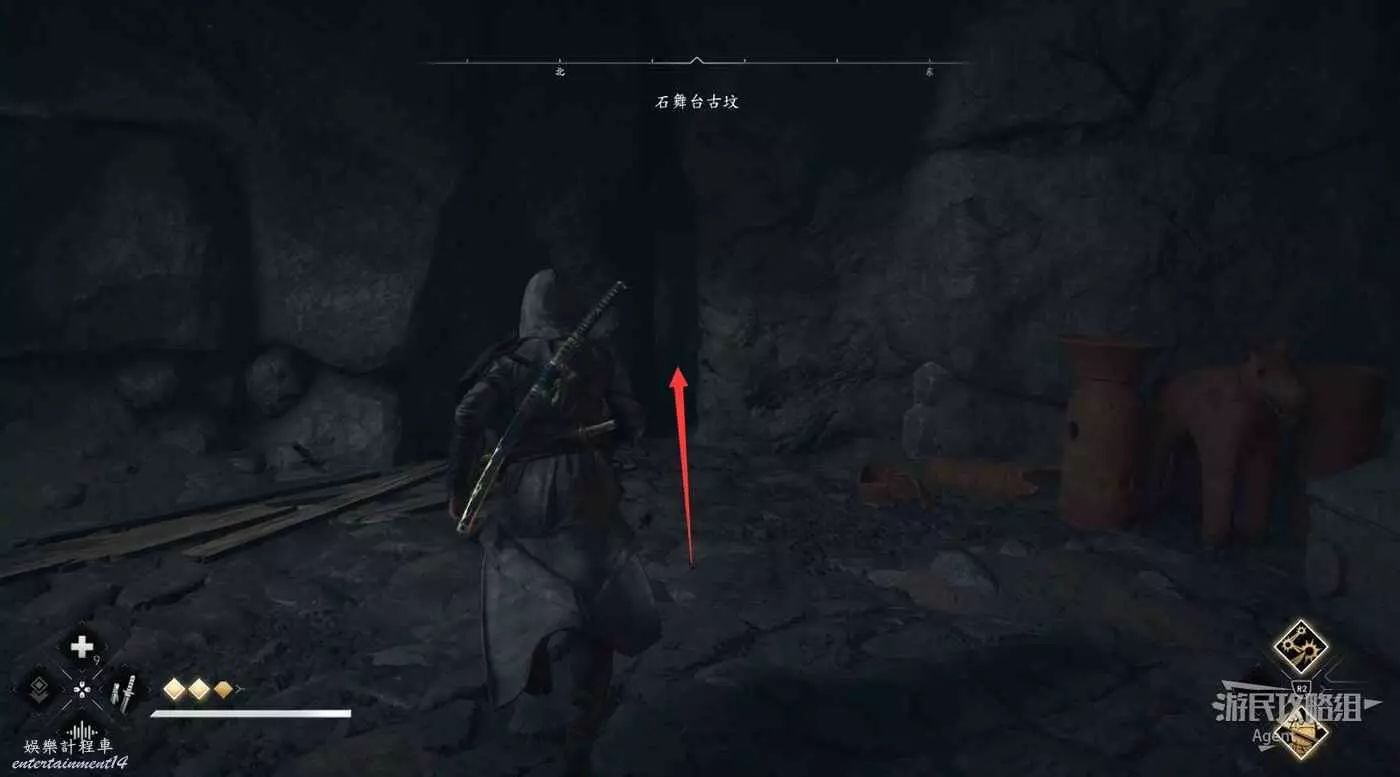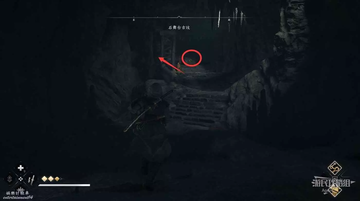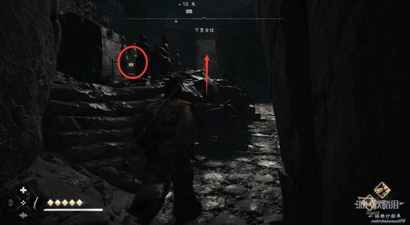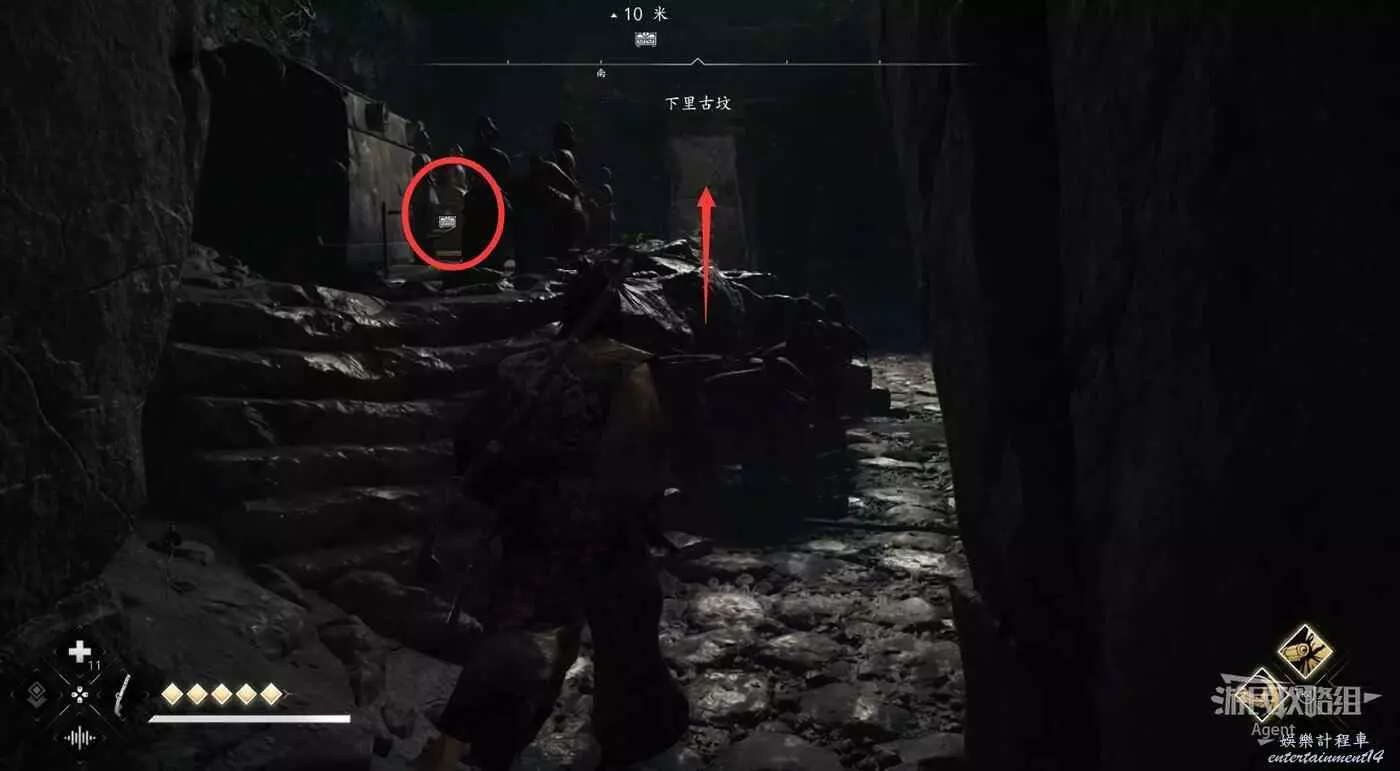 走下樓梯後有個岔路口,先去左邊打碎罐子拿個小寶箱,然後回來往前走。