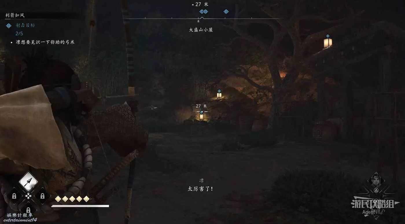 用弓箭射擊五個燈籠,然後注意戀愛選項。