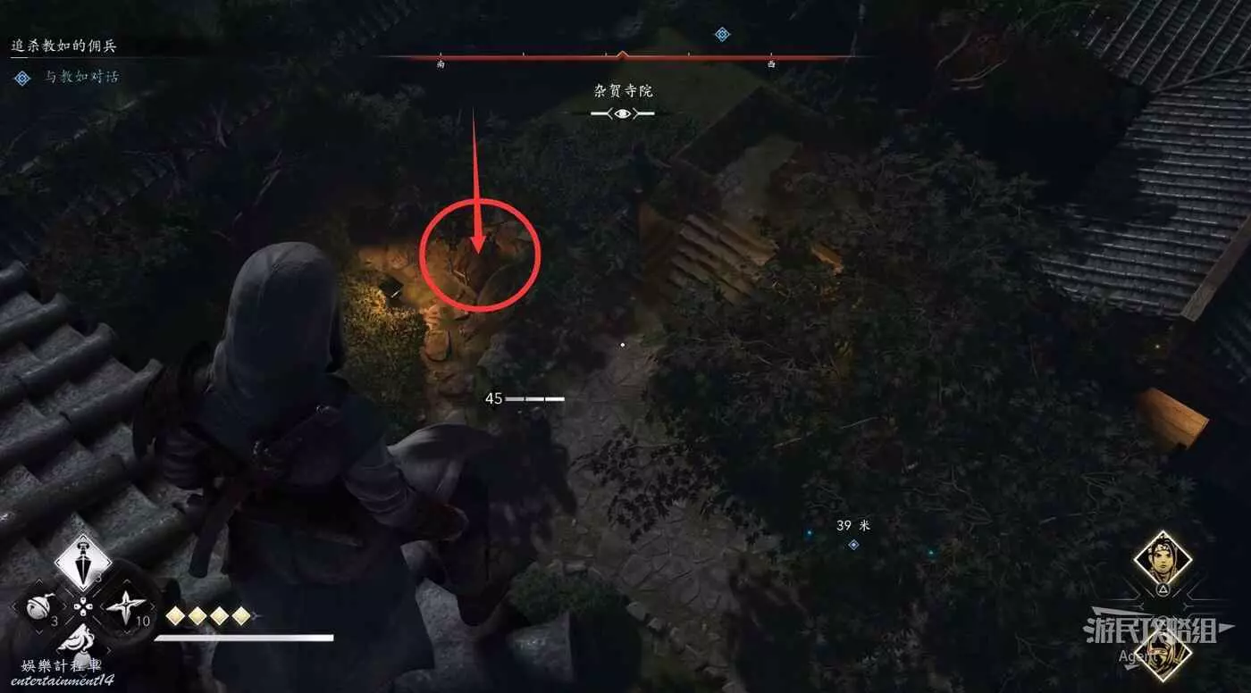 和教如對話後,繼續往前走可以走出洞,然後去刺殺剩餘的傭兵。