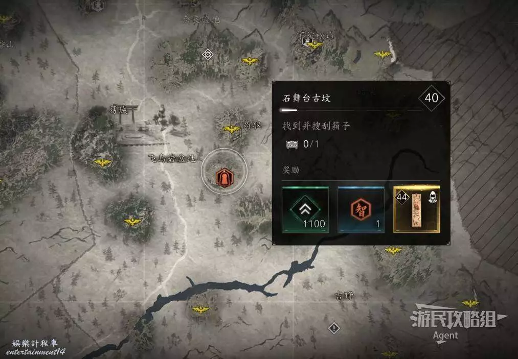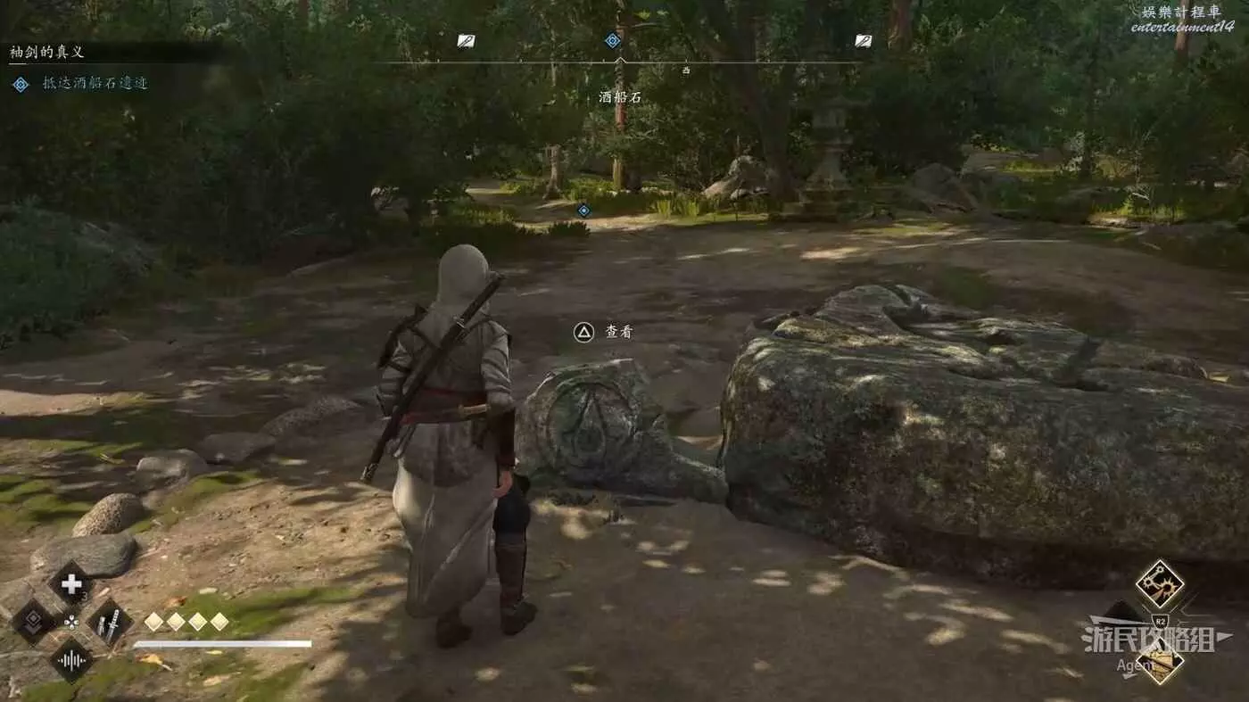 到大和的飛鳥岩盆地,找到有刺客標誌的酒船石遺跡。